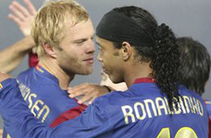 Barcelona er komið í úrslitin á HM félagsliða sem fram fer í Japan eftir 4-0 sigur á America frá Úrúgvæ í morgun. Eiður Smári Guðjohnsen, Deco, Ronaldinho og Marquez skoruðu mörk Barcelona sem mætir Internacional frá Brasilíu í úrslitaleik mótsins á sunnudag. Sjónvarpsstöðin Sýn er með beinar útsendingar frá mótinu.