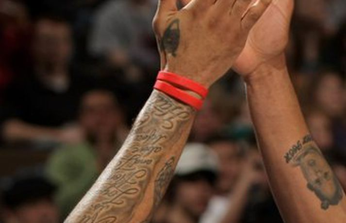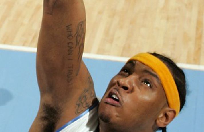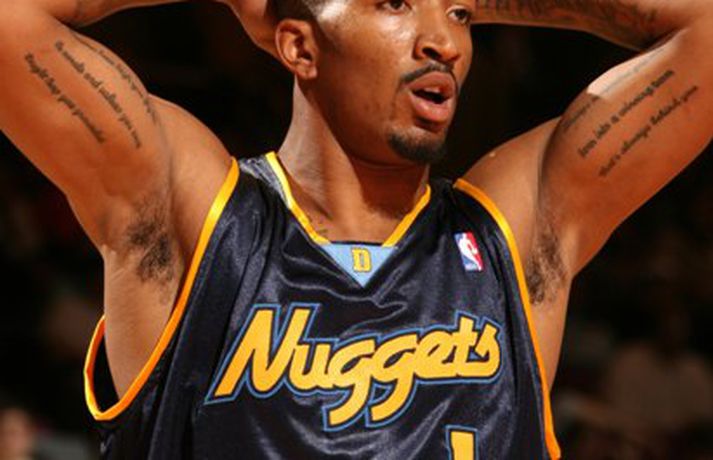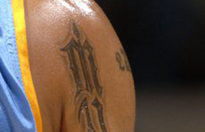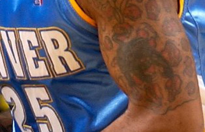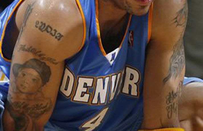 Færst hefur í vöxt á síðustu árum að NBA leikmenn skarti skrautlegum húðflúrum. Leikmenn Denver Nuggets eru líklega hvað öflugastir á þessu sviði í deildinni í dag. Byrjunarlið Denver skipa þeir Allen Iverson, Anthony Carter, Marcus Camby, Carmelo Anthony og Kenyon Martin, en þessir menn eiga það sameiginlegt að vera miklir húðlistamenn. Sömu sögu má segja af bakverðinum JR Smith sem er jafnan með fyrstu mönnum af bekknum hjá liðnu, en hann fær að fljóta með í myndaseríunni sem Vísir hefur tekið saman með þessum litríku köppum. Smelltu á myndina hér fyrir neðan til að sjá myndaseríu með blekaðasta liði NBA deildarinnar - Denver Nuggets. Allen IversonNordicPhotos/GettyImagesJR SmithNordicPhotos/GettyImagesCarmelo AnthonyNordicPhotos/GettyImagesAllen IversonNordicPhotos/GettyImagesMarcus CambyNordicPhotos/GettyImagesAnthony CarterNordicPhotos/GettyImagesAnthony CarterNordicPhotos/GettyImagesKenyon MartinNordicPhotos/GettyImagesKenyon MartinNordicPhotos/GettyImagesKenyon MartinNordicPhotos/GettyImagesCarmelo AnthonyNordicPhotos/GettyImagesCarmelo AnthonyNordicPhotos/GettyImagesJR SmithNordicPhotos/GettyImagesNordicPhotos/GettyImages