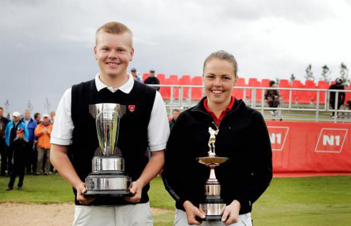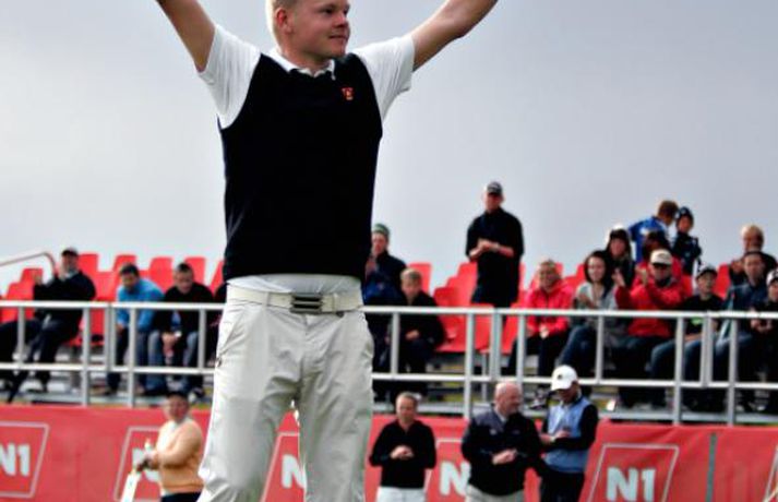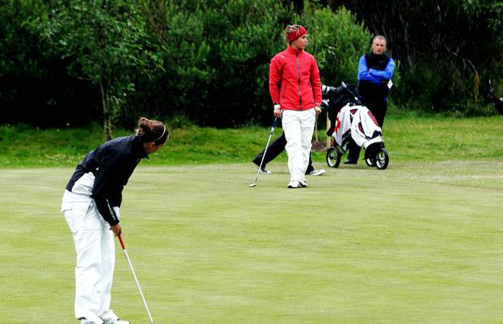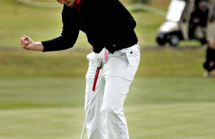 Það var svo sannarlega boðið upp á golfveislu af bestu gerð í Grafarholtinu í gær þegar lokadagurinn á Íslandsmótinu í höggleik fór fram. Daníel Rúnarsson, einn færasti íþróttaljósmyndari landsins, mætti á staðinn og tók myndirnar sem má nálgast í mynda-albúminu hér að neðan. Aðstæður voru hreint frábærar í Grafarholtinu um helgina þar sem Íslandsmótið í höggleik fór fram. Áhorfendur fjölmenntu og fengu svo sannarlega spennu á lokadeginum.DaníelValdís Þóra Jónsdóttir úr Golfklúbbnum Leyni er hér að pútta.DaníelSigný Arnórsdóttir úr GK lék best kvenna á lokadeginum og hafnaði í öðru sæti.DaníelValdís Þóra tryggir sér sigurinn eftir spennandi lokahring.DaníelValdís varð fyrst kvenkylfinga úr Leyni til að vinna titil.DaníelÓlafur Björn Loftsson úr NK tryggði sér Íslandsmeistaratitilinn í höggleik karla með ótrúlegum endaspretti á Grafarholtsvelli.DaníelUmspil þurfti til að knýja fram úrslitin í karlaflokki.DaníelÓlafur hylltur af áhorfendum.DaníelFélagar Ólafs kasta honum upp í loft eftir að Íslandsmeistaratitillinn var í höfn.DaníelStefán Már Stefánsson virtist vera kominn með níu fingur á titilinn þegar Ólafur tók ótrúlegan endasprett. Stefán varð að láta sér annað sætið að góðu.DaníelÓlafur og Valdís með bikarana sína.DaníelValdís lék lokahringinn á 73 höggum, eða 2 höggum yfir pari.DaníelÓlafur Björn og Valdís Þóra á myndinni sem prýddi forsíðu Fréttablaðsins.DaníelÓlafur Björn Loftsson fetaði í fótspor föður síns, sem vann titilinn 1972.DaníelFaðir Ólafs var kylfuberi hans á mótinu og móðirin sá um nestið hans.DaníelÓlafur sýndi mögnuð tilþrif á mótinu og getur verið stoltur.DaníelMeð bikarana góðu.Daníel
