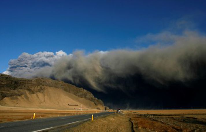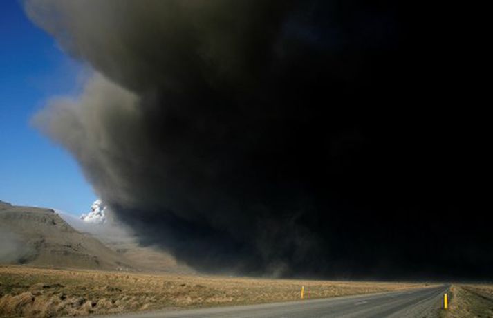Pjetur Sigurðsson, ljósmyndari Fréttablaðsins, var á slóðum eldgossins á Eyjafjallajökli í gærkvöld og myndaði það sem fyrir augun bar. Nokkrar myndanna má sjá í myndasafni hér fyrir neðan.Eins og sjá má er öskuskýið úr jöklinum hrikalega þykktMYND/Pjetur