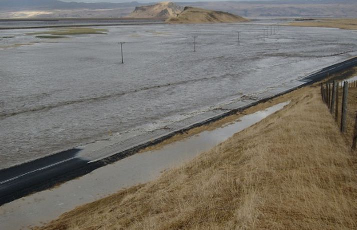 Nýja brúin heil - gamla fór á kaf Jón Hákon Halldórsson skrifar 14. apríl 2010 13:35 Það er allt á kafi eftir hlaupið. Mynd/ Valur G. Ragnarsson Vatn rennur nú undir brúna við Markarfljót og framhjá henni en brúin stendur heil, segir Kjartan Þorkelsson sýslumaður á Hvolsvelli. Hann segir að skarð hafi verið rofið í veginn til þess að taka þungann af brúnni. Auðveldara sé að laga vegi en brú. Kjartan segir vatnsrennslið ekki vera að aukast heldur sé komið jafnvægi á það. Sveinn Rúnarsson yfirlögregluþjónn á Hvolsvelli segir að vegir séu lokaðir þannig að enginn fari austar en að Hvolsvelli. Hann segir ekki ljóst hversu miklar skemmdir hafi orðið í vatnsflauminum. Það eigi eftir að kanna það. Sveinn segir að verkefni lögreglunnar sé nú að halda lokunum og gæta þess að enginn maður fari inn á hættusvæðinu. Vatnsflaumurinn fór yfir gömlu Markarbrúna eins og sést á myndinni sem fylgir þessari frétt. Skoðaðu myndasafnið sem fylgir, með myndum frá Val Ragnarssyni, til að sjá eyðileggingar gossins. Eldgos og jarðhræringar Gos á Fimmvörðuhálsi Mest lesið Grunaður um að nauðga konu þrisvar sömu nóttina Innlent Segir Bandaríkin ekki geta ráðist inn Erlent „Aldrei fyrirgefanlegt þegar það er farið svona með opinbert fé“ Innlent „Gætir verið pirrandi við matarborðið en það er þess virði“ Innlent Annar hinna handteknu látinn laus: „Drepið mig, drepið mig, drepið mig“ Erlent Þúsundir hafi orðið af milljónum Innlent Moskítóflugan lifði kuldakastið af Innlent Nokkrar milljónir horfnar á örfáum vikum Innlent Hjóluðu 1300 kílómetra meðfram Dóná með börnum sínum Innlent Rændur fyrir utan Costco um hábjartan dag Innlent Fleiri fréttir Grunaður um að nauðga konu þrisvar sömu nóttina „Aldrei fyrirgefanlegt þegar það er farið svona með opinbert fé“ Hjóluðu 1300 kílómetra meðfram Dóná með börnum sínum „Gætir verið pirrandi við matarborðið en það er þess virði“ Kynlífsverkafólk í Norræna húsinu og tölvuspilandi eldri borgarar Moskítóflugan lifði kuldakastið af „Þorsti í auglýsingafé er talsverður hjá Ríkisútvarpinu“ Hætta á að ákveðnir staðir þrífist ekki Velunnarar hefja söfnun fyrir ekkju Hjörleifs Þúsundir hafi orðið af milljónum Hundrað þúsund færri kindur í dag en fyrir tíu árum Dökk mynd í byggingariðnaði, umsvif RÚV og fækkun fjár Losun gróðurhúsalofttegunda jókst í Reykjavík Húsnæðismálin og staða Ríkisútvarpsins Ölvaður undir stýri með börn í bílnum Kosningahugur í eigendum frístundahúsa Keypti stól í Góða hirðinum sem reyndist fágætur gripur Getur gervigreindarsmjaður leitt til gervigreindargeðrofs? Söguleg óvissa á fasteignamarkaði og meðvirk gervigreind Óttast að námsbraut verði undir verði af frumvarpinu Kostnaður við stjórnsýslu borgarinnar mun hærri en landsmeðaltalið Tveir fá heilablóðfall á hverjum degi á Íslandi Breytingar sem litlu breyta og mokstursmenn þakka veðurguðunum Líta eigi á eignir landsbyggðafólks í Reykjavík sem sumarbústaði Sendi síðasta bréfið degi áður en fellibylurinn gekk yfir Borgin tekur út framkvæmdir við Vesturbæjarlaug Nokkrar milljónir horfnar á örfáum vikum Tilkynnt um bíl fullan af flugeldum Valhöll auglýst til sölu Rændur fyrir utan Costco um hábjartan dag Sjá meira