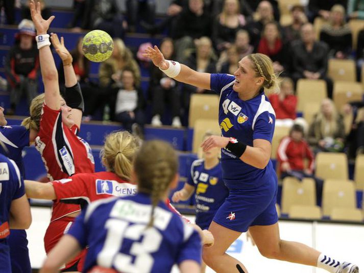 Hrafnhildur: Búin að bíða eftir þessu í ansi mörg ár Óskar Ófeigur Jónsson skrifar 30. nóvember 2010 20:30 Hrafnhildur Skúladóttir. Hrafnhildur Skúladóttir og félagar hennar í íslenska kvennalandsliðinu eru nú á lokasprettinum í undirbúningi sínum fyrir Evrópumótið sem hefst eftir viku. Júlíus Jónasson, landsliðsþjálfari tilkynnti lokahóp sinn á blaðamannafundi í dag. „Það er kominn mjög mikill spenningur í mig núna. Ég er búin að vera í landsliðinu í þrettán ár og hef alltaf stefnt að þessu. Ég er því búin að bíða í ansi mörg ár," segir Hrafnhildur en hún og liðið er nýkomin heim eftir æfingamót í Noregi um síðustu helgi. „Það var mikið sjokk að tapa svona illa á móti Noregi en þessi leikur var svolítið svindl. Við eyddum öllum fimmtudeginum að ferðast, þurftum að taka tvö flug og fengum síðan enga æfingu um kvöldið. Við náðum ekki að ná úr okkur neinni flugþreytu og svo vöknuðum við eldsnemma næsta morgun til þess að fara í annað flug þar sem leikurinn var," lýsir Hrafnhildur. „Við eyddum tveimur dögum í ferðlög og fórum beint í leik án þess að hreyfa okkur nokkuð. Það var engin líkamlega klár í slaginn. Þetta var bara hræðilegt og við áttum bara mjög slæman dag. Það er mjög margt gott sem er hægt að taka með á Evrópumótið úr hinum tveimur leikjunum," segir Hrafnhildur. „Við áttum stóran draum um að vinna Dani, vorum einu marki yfir þegar korter var eftir og áttum möguleika á því að ná tveggja marka forskoti. Við klúðruðum því en það var hörkuspennandi leikur og það var bara rétt í lokin sem við misstum þær frá okkur," segir Hrafnhildur en íslenska liðið tapaði 24-30 á móti Dönum. Lokaleikurinn tapaðist síðan á móti Serbum eftir spennandi leik. „Væntingarnar til EM eru ennþá að koma á óvart og komast í milliriðla. Við ætlum að koma óvart strax í fyrsta leik á móti Króatíu. Fyrirfram ættum við að eiga mestu möguleikana á móti Króatíu en Rússar stefna á það að verða Evrópumeistarar og eru í topp þremur í Evrópu," segir Hrafnhildur sem segir að þriðju mótherjar íslenska liðsins í riðlinum, Svartfjallaland, sé búið að missa tvo leikmenn sem ætti að hjálpa íslenska liðinu. „Það eru tvær sem hafa spilað með Serbíu en eru ekki búnar að bíða í þrjú ár og fá því ekki að spila. Þar á meðal er örvhent skytta sem er mjög mikill markaskorari og línumaður sem er algjör vinnuhestur. Það eru klárlega mjög sterkir leikmenn sem þær missa sem er bara mjög gott fyrir okkur," sagði Hrafnhildur. Íslenski handboltinn Mest lesið Þessi tíu eru tilnefnd sem Íþróttamaður ársins 2025: 23 ára aldursmunur Sport Sakaður um niðurlægingu: „Við viljum ekki hafa hann sem þjálfara“ Handbolti Erfitt að vera í burtu þegar mamma greindist Fótbolti Einn leikmaður með samning og völlurinn ólöglegur Fótbolti Áfallið staðreynd og Isak búinn í aðgerð Enski boltinn Vildi tapa legg: „Mesti hávaði sem ég hef heyrt“ Sport Salah færði Egyptum draumabyrjun Fótbolti Sagði látna systur sína hafa tryggt sigurinn ótrúlega Sport Steraleikarnir segi ungu fólki að það sé aldrei nógu fullkomið Sport „Svona lítur frábær ákvörðun út“ Fótbolti Fleiri fréttir Sakaður um niðurlægingu: „Við viljum ekki hafa hann sem þjálfara“ Haukur getur náð hundrað plús hundrað fyrir EM-fríið Rúnar sótti sinn fyrsta sigur sem þjálfari Wetzlar Haukur með sjö mörk og Magdeburg rétt marði botnliðið Rúmlega áttræður Moustafa endurkjörinn forseti IHF með yfirburðum Slæm fjárhagsstaða HSÍ kemur ekki niður á EM Donni fagnaði EM vali með skotsýningu Sigvaldi Björn fjarri góðu gamni í sjaldséðu tapi Kolstad Eva Björk með stórleik í fyrsta sigri Stjörnunnar „Hann er ein stærsta ástæðan fyrir því“ KA-menn fengu góða jólagjöf Flautumark hjá FH og ÍR með þeim í Höllina KA í undanúrslit á kostnað bikarmeistaranna Stærsti leikur ársins í Eyjum fer fram í kvöld „Er því miður kominn í jólafrí“ „Þetta var mjög skrítinn leikur“ Haukakonur í fjórða sætið KA/Þór - Valur 23-30 | Ótrúlegur viðsnúningur gestanna Ómar óstöðvandi og Magdeburg í undanúrslit Ómar Ingi fær meiri ábyrgð og tekur við kyndlinum af Aroni Ekkert stríð við Porto og einstakur Þorsteinn nítjándi maður Síðasta verkefni reyndist dýrt fyrir Sigvalda Teitur fer á EM sem hornamaður í stað Sigvalda Snorri kynnti EM-strákana okkar Hleyptu Þorsteini ekki heim og vilja ekki að hann fari á EM Kári og Logi vilja henda Ými út úr landsliðinu Sagður utan hóps fyrir Bjarka og Orra Geggjaðar Eyjakonur á toppinn Þorsteinn Leó að ná sér „langt á undan áætlun“ Birtu tölvupóst þar sem efast er um heilsu forseta IHF Sjá meira