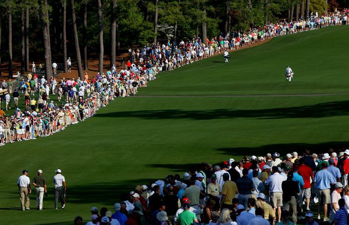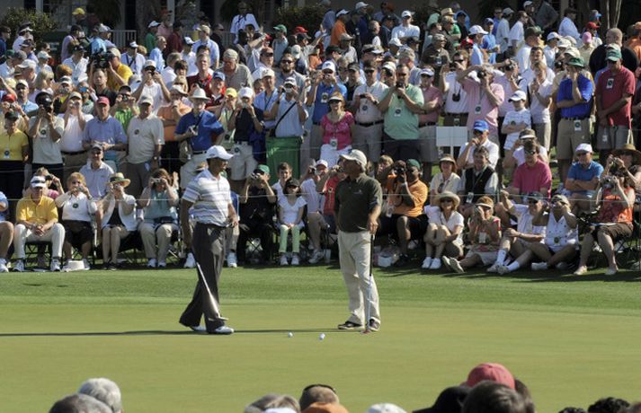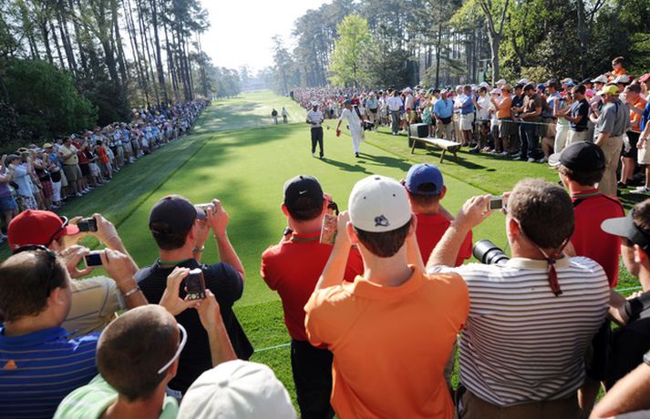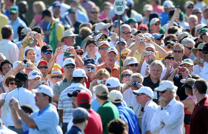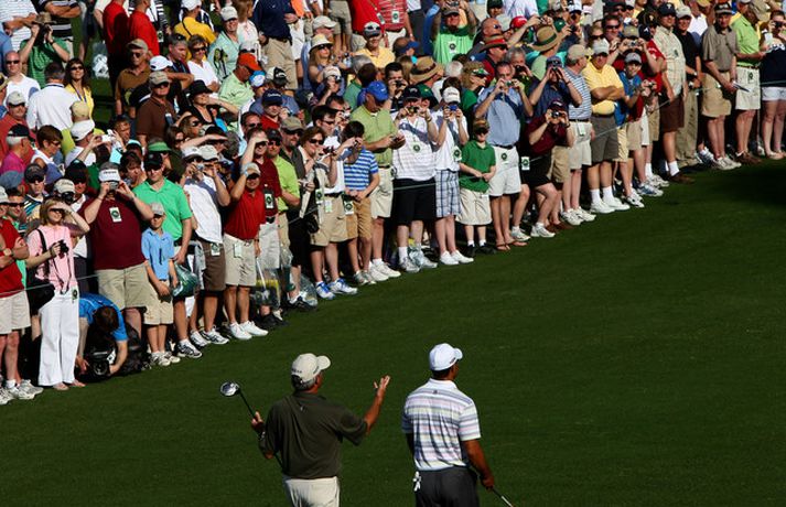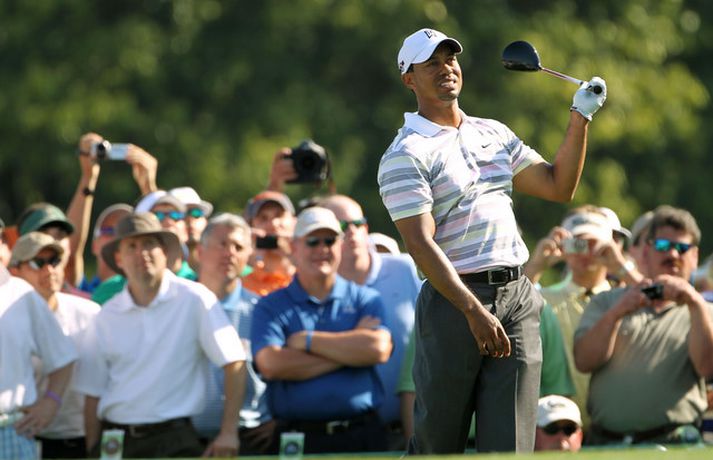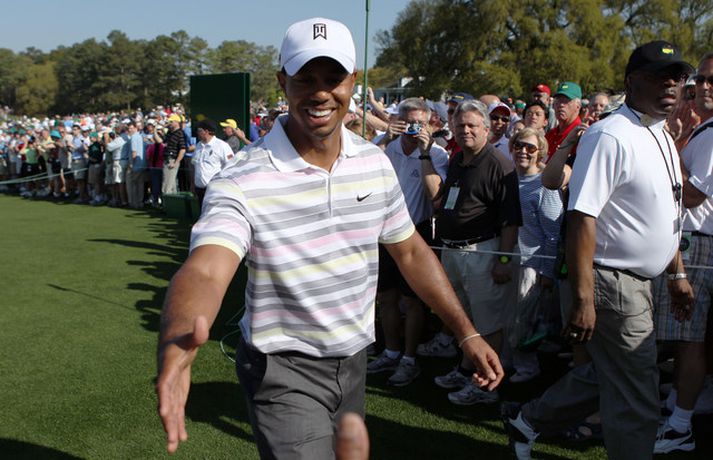 Tiger Woods spilaði golf í fyrsta skipti í fimm mánuði fyrir framan áhorfendur í dag. Þá æfði hann á Augusta-vellinum þar sem Masters byrjar í vikunni. Mikill fjöldi áhorfenda fylgdi Tiger eftir á æfingunni í dag. Þeir heilsuðu honum kurteislega en létu annars lítið í sér heyra. Tiger var afar þakklátur fyrir hvert einasta klapp sem hann fékk á æfingunni en hann æfði með félaga sínum, Fred Couples. Woods var annars í ágætu stuði á æfingunni, var alþýðlegur í fasi og tók nokkrum sinnum í hendur áhorfenda. Gríðarleg öryggisgæsla var á vellinum meðan á æfingunni stóð og líklegast sú mesta á æfingu frá upphafi. Tiger mun á eftir mæta sinn fyrsta opna blaðamannafund á árinu og er talið að sá fundur eigi eftir að reynast honum erfiðari en æfingin í dag. 180 blaðamenn verða á fundinum. Hægt er að sjá myndir af æfingunni í dag í albúminu hér að neðan. Nordic Photos/AFPNordic Photos/AFPNordic Photos/AFPNordic Photos/AFPNordic Photos/AFPNordic Photos/AFPNordic Photos/AFPNordic Photos/AFPNordic Photos/AFPNordic Photos/AFP