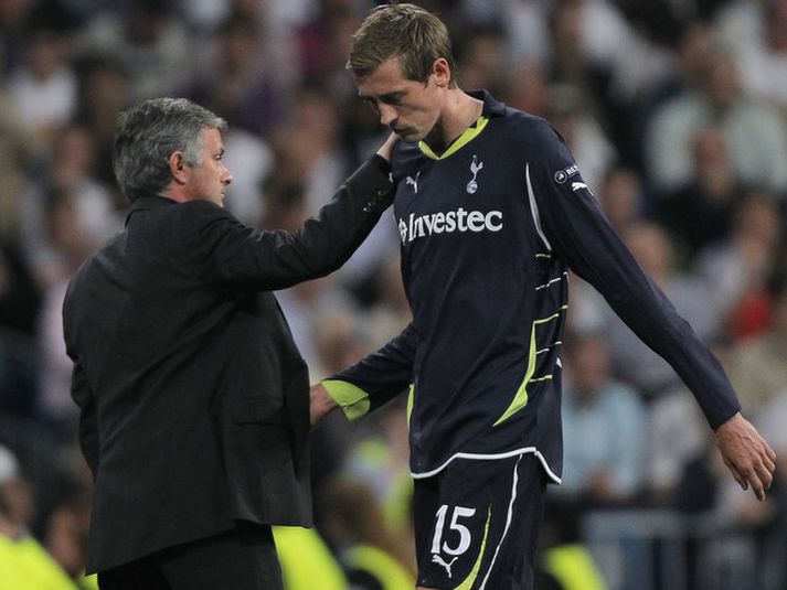 Mourinho: Þekki vel enska hugarfarið og við erum ekki komnir áfram Óskar Ófeigur Jónsson skrifar 5. apríl 2011 21:24 Jose Mourinho, þjálfari Real Madrid og Peter Crouch. Mynd/AP Jose Mourinho, þjálfari Real Madrid, var ekki tilbúinn að fagna sæti í undanúrslitum Meistaradeildarinnar þrátt fyrir 4-0 sigur í kvöld í fyrri leiknum á móti Tottenham í fyrri leik liðanna í átta liða úrslitunum. Real Madrid komst í 1-0 eftir 5 mínútna leik og lék síðan manni fleiri síðustu 75 mínútur leiksins. „Nei við erum ekki komnir áfram. Ég þekki England vel, ég þekki enska hugarfarið og ég þekki White Hart Lane. Á móti öllum öðrum menningarheimum myndi ég segja að við værum komnir áfram en enskir fótboltamenn missa ekki trúna og gefast ekki upp fyrr en á síðustu mínútunni, þannig að þetta er ekki búið," sagði Jose Mourinho eftir leikinn. „Við byrjuðum ellefu á móti ellefu og skoruðum strax mark. Þetta varð vonlaust verkefni fyrir Spurs eftir að þeir urðu tíu inn á vellinum. Ég hef áður lent í svona aðstöðu með bæði Chelsea og Inter. Liðið sem er með ellefu menn þarf bara að halda uppi tempóinu í leiknum og leyfa ekki mótherjanum að ná andanum. Við gerðum það í seinni hálfleiknum," sagði Mourinho. Meistaradeild Evrópu Mest lesið Arnar Daði rekinn frá Stjörnunni en áfram þjálfari kvennaliðsins Handbolti Koepka fyrsta stjarnan sem riftir samningi við LIV Golf Ótrúlegur sigur á HM: „Ég er mjög tregur svo pressan nær ekki til mín“ Sport „Þetta er stærsti klúbbur Íslands“ Íslenski boltinn Man. Utd reyndi stíft en Semenyo kaus City Enski boltinn Sagan ekki sönn: „Veit ekki hvaðan þetta á að hafa komið“ Íslenski boltinn Þessi tíu eru tilnefnd sem Íþróttamaður ársins 2025: 23 ára aldursmunur Sport Öll höllin æpti nafn Gísla í spennutrylli Handbolti Stefndi á ÓL en fannst látinn á hótelherbergi Sport Arsenal í undanúrslit eftir vító Enski boltinn Fleiri fréttir „Þetta er stærsti klúbbur Íslands“ Kaupmannahafnarbúi afgreiddi Úganda Arsenal í undanúrslit eftir vító Man. Utd reyndi stíft en Semenyo kaus City Iwobi og Lookman áberandi í sigri Nígeríu „Tölfræðilega séð eiga þeir ekkert að vera í þessari stöðu“ Amanda hætt hjá Twente Jackson hóf Afríkumótið með látum Fullkrug leysir Origi af í Mílanó Versta tímabil Vinícius í mörg ár og samningaviðræður sigla í strand Kongóliðar byrja á sigri Glódís framlengir samninginn við Bayern Chelsea setur sig í samband við Semenyo Sagan ekki sönn: „Veit ekki hvaðan þetta á að hafa komið“ Hætt við að spila í Ástralíu en óvíst hvar leikurinn verður Neymar kominn á lappir og lofar að skora í úrslitaleik HM Jiménez jafnaði bestu vítaskyttu sögunnar Slot mun sakna Isak í tvo mánuði eftir „glórulausa tæklingu“ Sjáðu „auma“ vítið sem skilaði Fulham sigri Erfitt að vera í burtu þegar mamma greindist „Svona lítur frábær ákvörðun út“ Einn leikmaður með samning og völlurinn ólöglegur Salah færði Egyptum draumabyrjun Fulham skildi Forest eftir við fallsvæðið Áfallið staðreynd og Isak búinn í aðgerð Neres hetja Napoli í Sádi-Arabíu Aron Einar lagði upp dýrmætt sigurmark Afkáralegt fagn hjá hetju Sambíu Glódís Perla veik í jólafríið en enn taplaus Glódís og Hákon best í fótboltanum á árinu Sjá meira