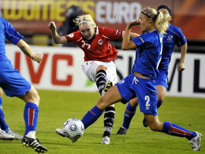 Íslandsbaninn að leggja skónna á hilluna aðeins 20 ára gömul Óskar Ófeigur Jónsson skrifar 11. janúar 2011 22:45 Cecilie Pedersen skorar hér sigurmarki sitt á móti Íslandi. Mynd/AFP Norska landsliðskonan Cecilie Pedersen vakti mikla athygli þegar hún var valin í norska landsliðshópinn á EM 2009 þrátt fyrir að spila í neðri deildum í Noregi. Hún kom síðan mikið við sögu í leiknum á móti Íslandi. Pedersen sem nú er aðeins tvítug íhugar nú að leggja skónna á hilluna. Eli Langsem, norski landsliðsþjálfarinn, vildi að Pedersen færi í sterkara lið og mörg norsk úrvalsdeildarlið vildu fá hana til sín. Nú er hún aftur á móti að hugsa alvarlega um að hætta í fótbolta. Cecilie Pedersen tryggði Noregi 1-0 sigur á Íslandi í öðrum leik liðanna í úrslitakeppni EM 2009 en hún skoraði þá með síðustu spyrnu fyrri hálfleiksins í sínum fyrsta landsleik. Hún sló í gegn í Noregi og fékk að lokum Gullboltann sem knattspyrnukona ársins. Pedersen hefur ekki mætt á fótboltaæfingu í tvo mánuði og segist bara spjara sig ágætlega án fótboltans. Hún á enn ár eftir af samningi sínum við B-deildarliðið Avaldsnes og það er vitað af tilraunum Arna-Bjørnar til þess að kaupa hana. Eins og staðan er núna er allt eins víst að hún spili ekki fótbolta aftur. Fótbolti á Norðurlöndum Mest lesið Sjáðu geggjaðan snúning Alberts áður en hann skoraði frábært mark Fótbolti Bunting dró orð sín til baka með tárin í augunum: „Ég er ekki meistari fólksins“ Sport Sakaður um svindl á HM í pílukasti Sport Táningur fær mikið hrós fyrir viðbrögð sín þegar mótherji missti meðvitund Fótbolti Áhorfendur ærðust eftir mögulega mark mótsins í fyrsta leik Fótbolti Klappstýrur Björgvins Karls slógu í gegn Sport Óskar Hrafn um komu Arnórs Ingva: „Gífurlega dýrmætt fyrir KR“ Íslenski boltinn Stórstjarna úr WNBA-deildinni í heimsókn á Íslandi Körfubolti „Ef þið væruð Antoine Semenyo, hvert mynduð þið fara?“ Enski boltinn Guardiola mun vigta leikmenn Man City eftir jólin Enski boltinn Fleiri fréttir Glódís og Hákon best í fótboltanum á árinu Frelsaði fjárfestirinn Dani Alves gefur sjálfum sér samning Fagnaði titli Liverpool sem óður maður um alla borg Mbappé breytti um fagn af góðu tilefni „Allir virðast elska hann“ Meira en 37 stöðugildi hjá Knattspyrnusambandi Íslands Táningur fær mikið hrós fyrir viðbrögð sín þegar mótherji missti meðvitund „Þetta mun ekki buga okkur“ Guardiola mun vigta leikmenn Man City eftir jólin „Ef þið væruð Antoine Semenyo, hvert mynduð þið fara?“ Freyr himinlifandi með íslensku strákana Sjáðu geggjaðan snúning Alberts áður en hann skoraði frábært mark Óskar Hrafn um komu Arnórs Ingva: „Gífurlega dýrmætt fyrir KR“ Áhorfendur ærðust eftir mögulega mark mótsins í fyrsta leik Sjáðu mörkin: Rogers sá um Manchester United Hleður Kjartan lofi eftir frábæra frumraun með Aberdeen Óttast að Isak hafi fótbrotnað Túfa gerir þriggja ára samning í Svíþjóð Arnór Ingvi orðinn leikmaður KR Albert skoraði í fyrsta sigri Fiorentina Bæjarar aftur á sigurbraut Tvenna frá Rogers tryggði Villa sigur gegn Manchester United Barcelona með fjögurra stiga forskot inn í nýtt ár Alvöru innkoma: Kjartan með stoðsendingu gegn Celtic í sínum fyrsta leik Sandra María hetjan og með þeim markahæstu í Þýskalandi Katla skoraði annan leikinn í röð Tómas Bent og félagar unnu Rangers og náðu átta stiga forskoti á toppnum Breiðablik kaupir Jónatan frá Norrköping Hildur áfram í bikarnum og Amanda enn á toppnum Fimmta sinn sem Arsenal er á toppnum um jólin: Unnu ekki titilinn í fyrstu fjögur skiptin Sjá meira