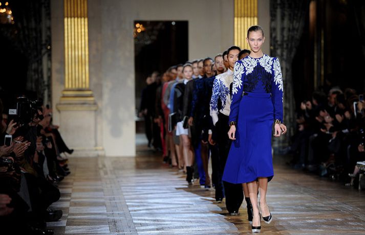 Á tískuvikunni í París sýndi Stella McCartney haustlínuna í ár sem er eins og sjá má í myndasafni einföld, stílhrein og kvenleg. Vetrarlitir eins og blár, grár og brúnn einkenna línuna. Þá má einnig sjá fylgihluti Stellu, djarfa skó og töskur.myndir/cover media