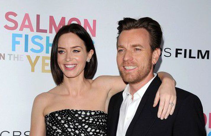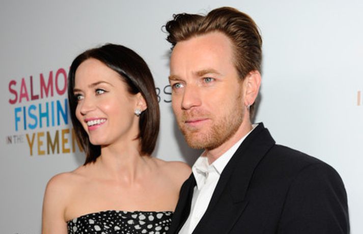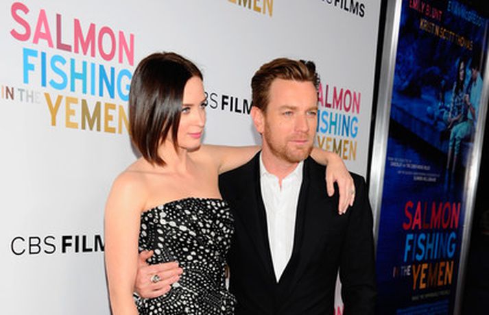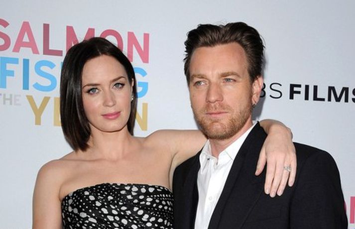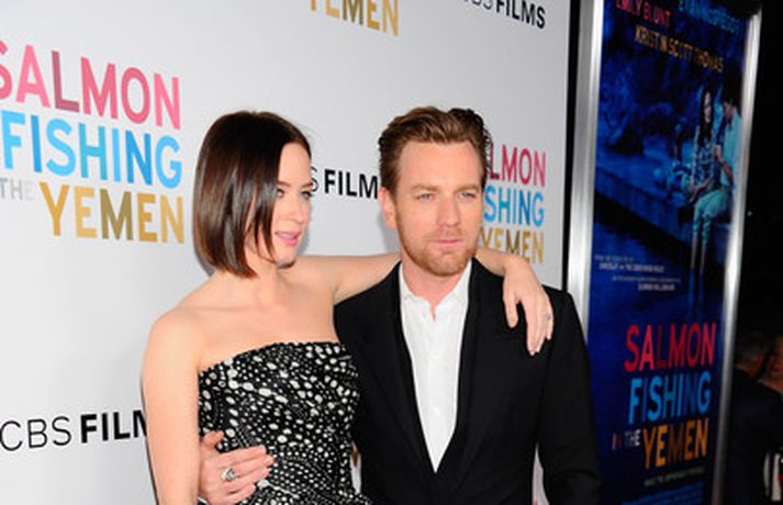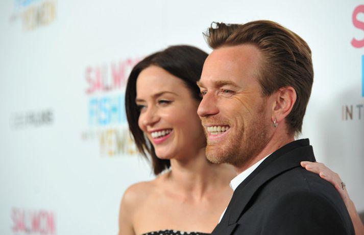 Leikkonan Emily Blunt var klædd í glæsilegan munstraðan Naeem Khan kjól á rauða dreglinum. Þá klæddist hún Gianvito Rossi hælaskóm sem fullkomnuðu heildarútlit leikkonunnar eins og sjá má á meðfylgjandi myndum. Leikarinn Ewan McGregor var ekki síðri en hann stillti sér upp með Emily klæddur í Dolce & Gabbana jakka, skyrtu og buxur.myndir/cover media