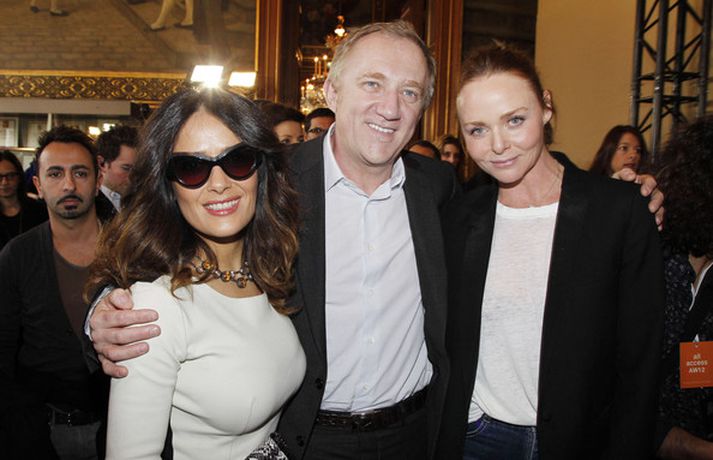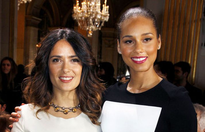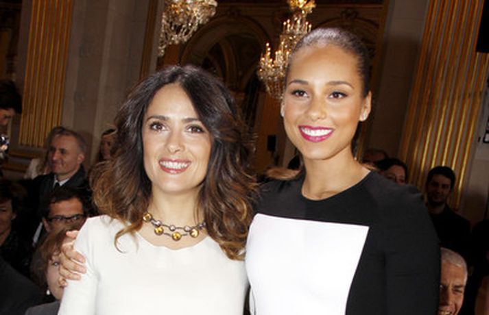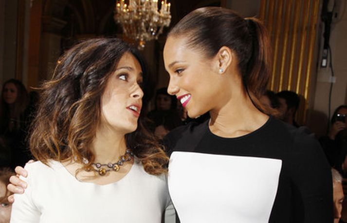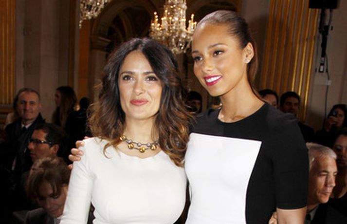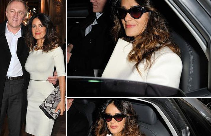 Leikkonan Salma Hayek, 45 ára, og eiginmaður hennar, Francois-Henri Pinault, mættu á Stellu McCartney haust- og vetrartískusýninguna fyrir árið 2012 sem bar yfirskriftina Ready-to-Wear í París í Frakklandi í gærdag. Salma var stórlæsileg í hvítum kjól og kápu í stíl eins og sjá má á myndunum. Þá má einnig sjá Stellu og Aliciu Keys.myndir/cover media