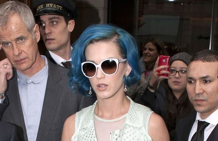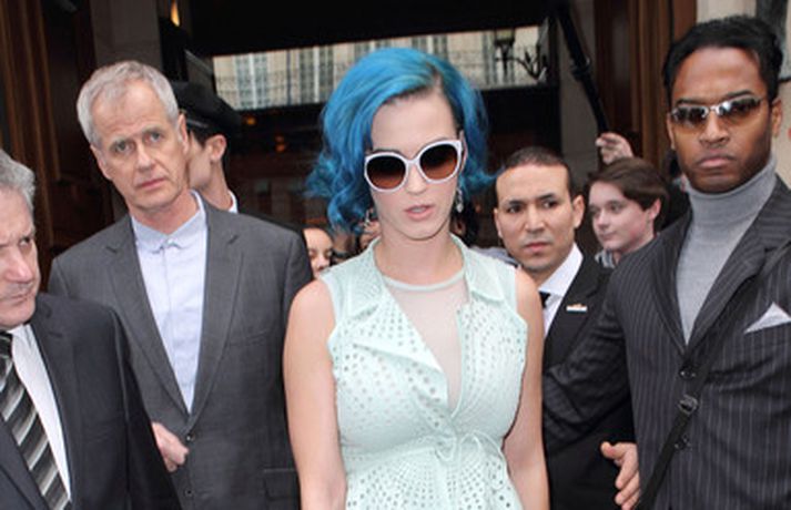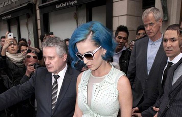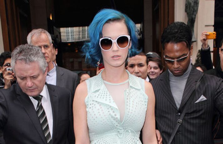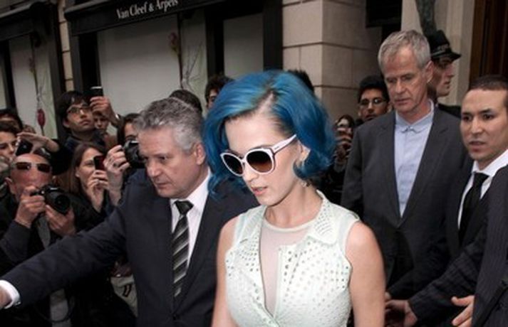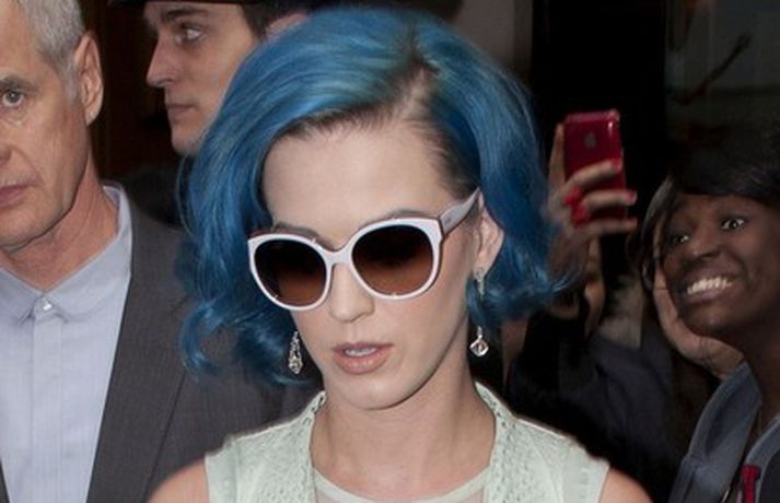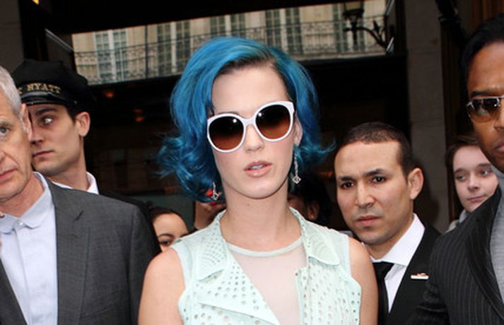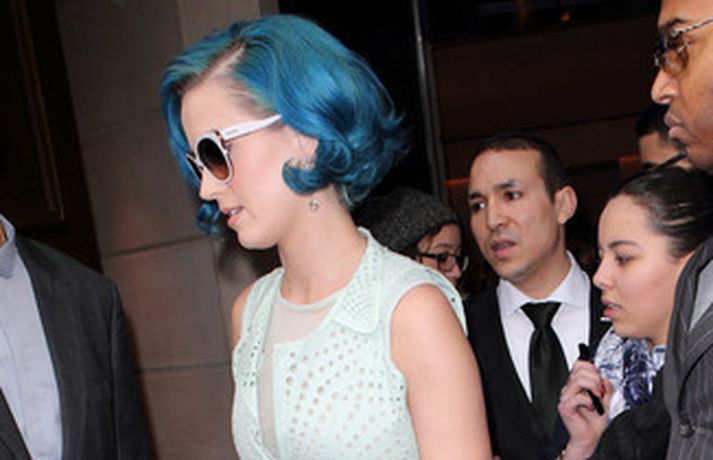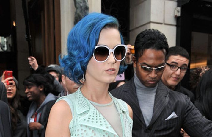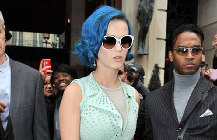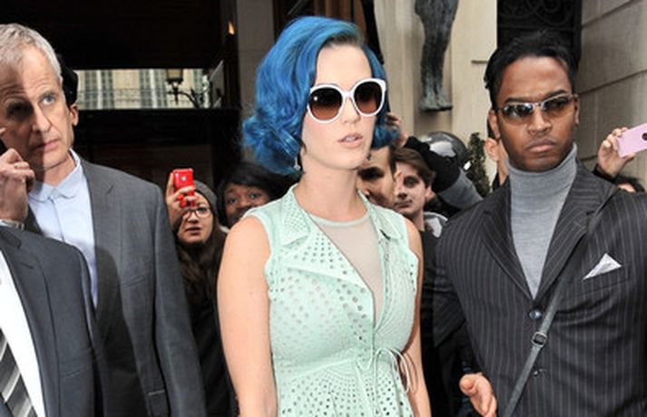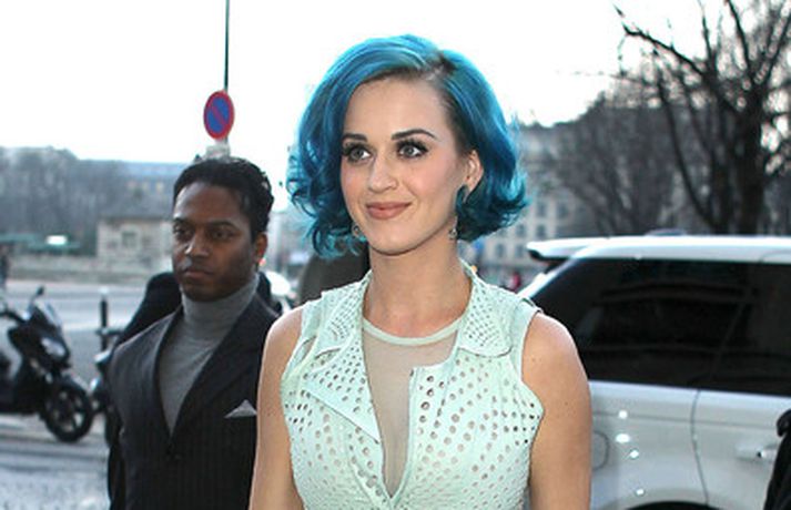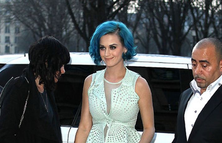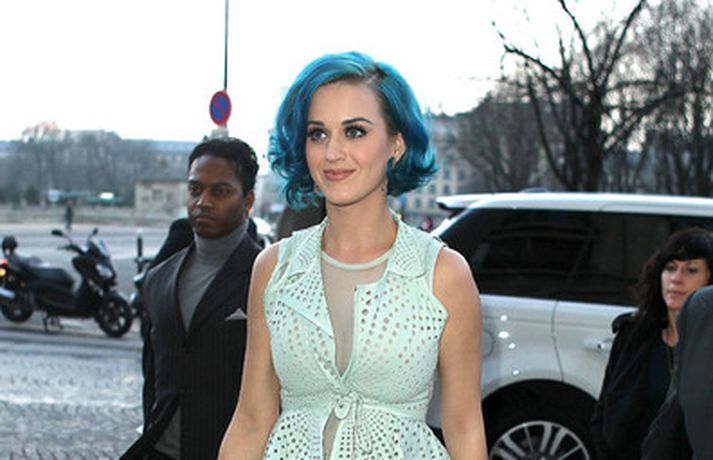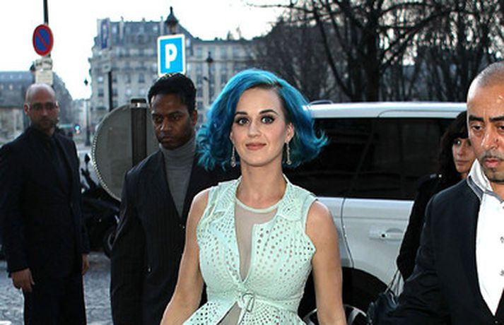 Söngkonan Katy Perry, 27 ára, var glæsileg í gær þegar hún mætti á tískuvikuna í Paris í Frakklandi klædd í Veru Wang kjól. Gegnsær kjóllinn fór henni vel sem og bláa hárið sem er orðið hennar vörumerki.Skoða má bláhærða Katy í myndasafni.