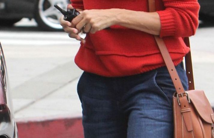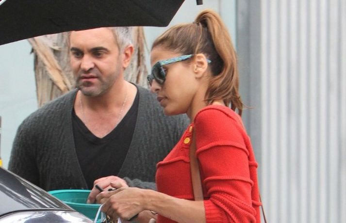 Leikkonan Eva Mendes, 38 ára, var klædd í rauða peysu með hárið tekið í tagl þegar hún verslaði í Beverly Hills í Kaliforníu í gær. „Ég æfi reglulega, ég borða holla fæðu og ég drekk þrjá lítra af vatni á dag. Ég borða fisk í miklu magni," sagði Eva spurð hvernig hún hugar að heilsunni. Skoða má Evu í myndasafni.