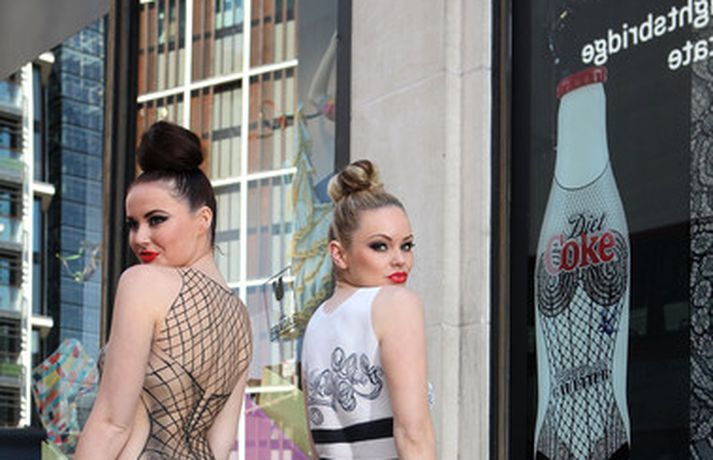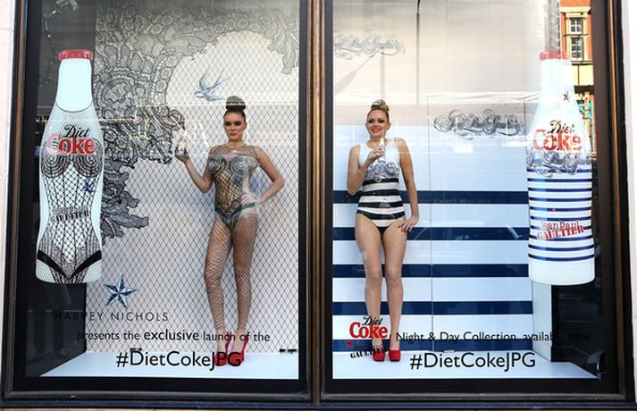 Listamaðurinn Carolyn Roper málaði tvær breskar fyrirsætur sem sátu fyrir í glugga versluninni Harvey Nichols í London fyrir herferð drykkjarins Diet Coke. Líkamar stúlknanna áttu að tákna flöskur framleiðandans. Um var að ræða hluta af Nótt og dagur herferð hönnuðarins Jean Paul Gaultier fyrir drykkjarframleiðandann.