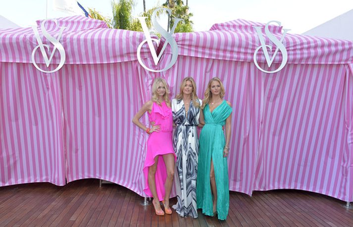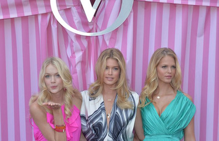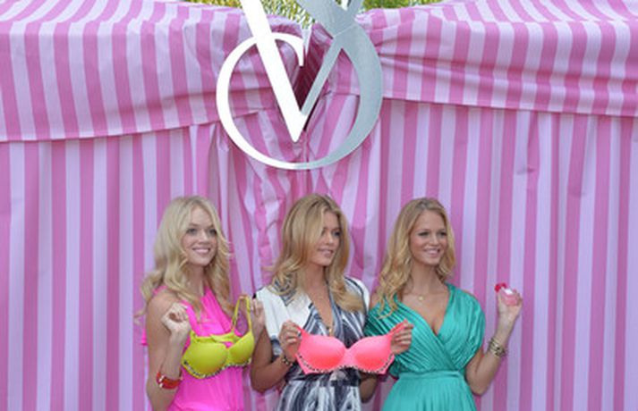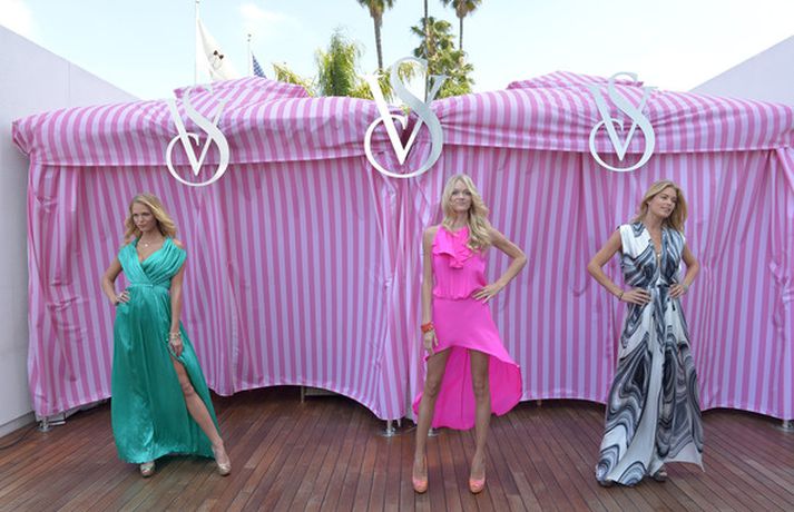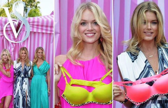 Fyrirsæturnar Lindsay Ellingson, Doutzen Kroes, og Erin Heatherton stilltu sér upp þegar þær kynntu nýja línu frá undirfataframleiðandanum Victoria Secret í Beverly Hills í Kaliforníu í gær. Undirfatalínan er í öllum regnbogans litum en yfirskrift hennar er kynþokki. Meðfylgjandi myndir voru teknar á fjölmiðlakynningunni.myndir/cover media