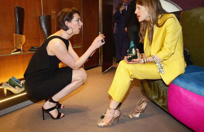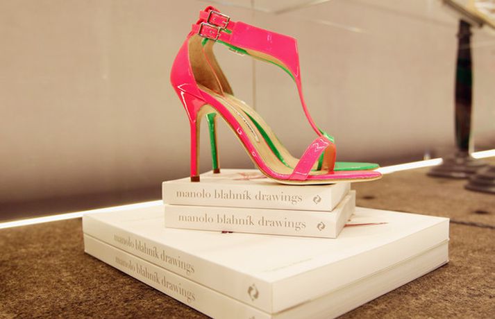 Stórstjarna skóiðnaðarins, sjálfur Manolo Blahnik frumsýndi nýja skólínu í tískuborginni Mílanó á Ítalíu í gær.Anna Dello Russo sem er stílisti, tískuritstjóri og listrænn hönnuður japanska Vogue lét sjá sig og mátaði nokkur pör. Eins og sjá má á meðfylgjandi myndasafni klæddist Manolo fagur bleikum skóm í frumsýningarpartýinu.