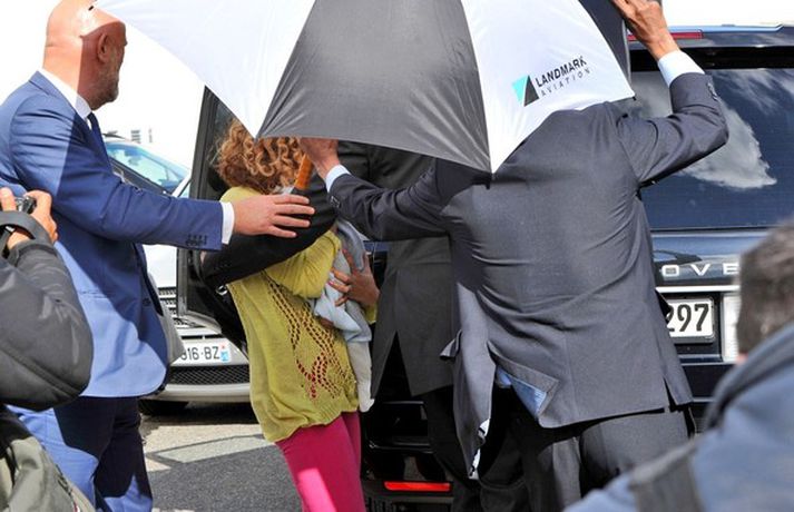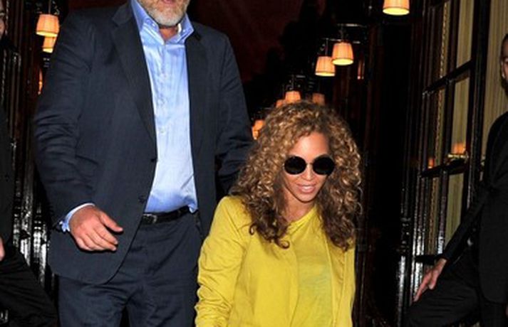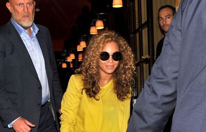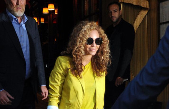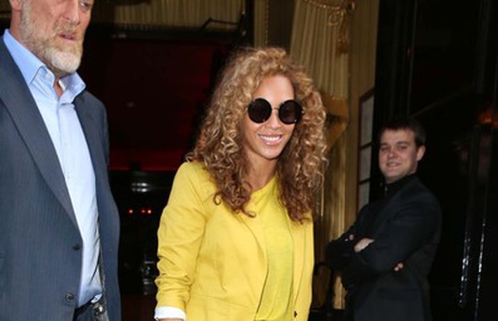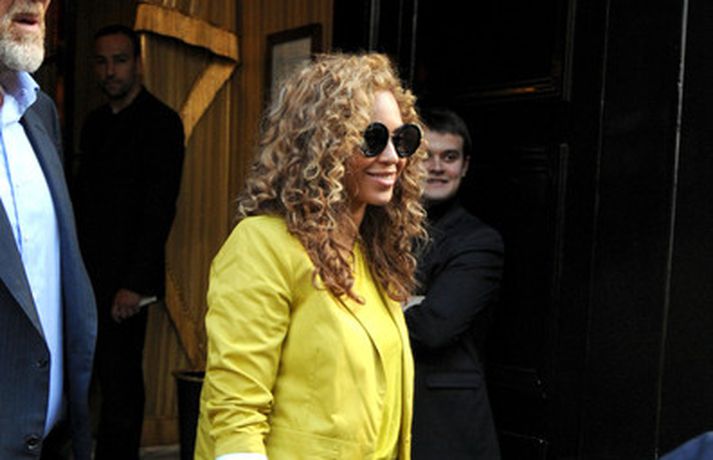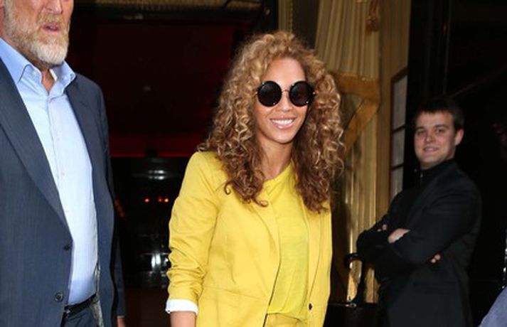 Beyonce Knowles geislar sem aldrei fyrr eins og sjá má í meðfylgjandi myndasafni. Söngkonan sást fyrir utan hótel í París í vikunni þar sem hún er í fríi ásamt fjölskyldu sinni. Hún var sumarleg og smart til fara klædd gulum stuttbuxum, bol og blazer. Einnig má sjá söngkonuna með dóttur sína í fanginu að reyna að forðast ágenga ljósmyndara.