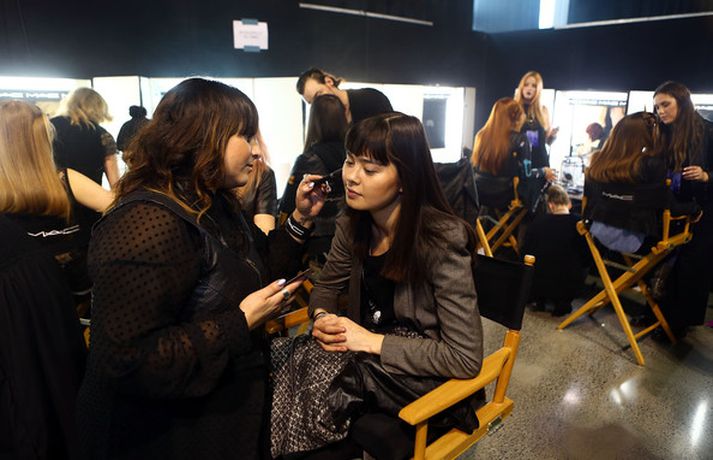 Það var skemmtileg stemmning baksviðs á Hailwood tískusýningunni á tísuvikunni í Nýja Sjálandi á dögunum þar sem haust og vetrartískan var sýnd fyrir næsta ár. Förðunin var einstaklega falleg en fyrirsæturnar voru allar með glóandi kinnar og glansandi augnförðun í brúnum tónum. Augabrúnir voru þykkar og farðinn var þunnur. Mjög náttúruleg stemmning. Í meðfylgjandi myndasafni má sjá myndirnar sem teknar voru baksviðs.