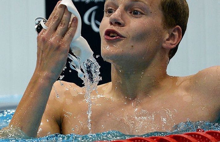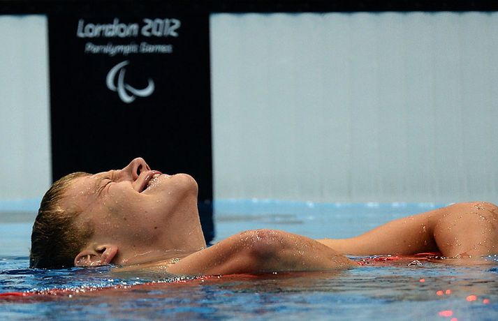 Jón Margeir skráði nafn sitt í sögubækurnar | Myndasyrpa Eflaust hafa tár fallið á mörgum íslenskum heimilum í dag þegar sundkappinn Jón Margeir Sverrisson vann til gullverðlauna í 200 metra skriðsundi á Ólympíumóti fatlaðra í London. 2. september 2012 22:11