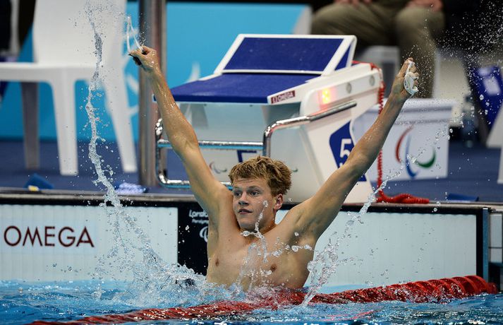 Ólympíugull og heimsmet hjá Jóni Margeiri Kolbeinn Tumi Daðason skrifar 2. september 2012 16:57 Jón Margeir Sverrisson úr Fjölni/Ösp vann í dag til gullverðlauna í 200 metra skriðsundi í flokki S14 á Ólympíumóti fatlaðra í London. Jón Margeir kom í mark á nýju heimsmeti og Ólympíumeti, 1:59,62 mínútum, og var 17/100 úr sekúndu á undan Ástralanum Daniel Fox sem varð annar. Cho Wonsang frá Suður-Kóreu varð þriðji á 1:59.93 mínútum. Um er að ræða fyrstu verðlaun Íslendinga á Ólympíumóti fatlaðra frá því í Aþenu árið 2004. Frábær árangur hjá þessum nítján ára afreksmanni sem náði forystunni þegar sundið var um það bil hálfnað og lét hana aldrei af hendi. Jón Margeir setti Íslandsmet og reyndar einnig Ólympíumet í undanúrslitunum í morgun þegar hann kom í mark á tímanum 2:00,32 mínútur. Ólympíumetið lifði reyndar aðeins í stutta stund því Daniel Fox bætti það skömmu síðar. Jón Margeir náði því heldur betur á nýjan leik í úrslitasundinu og setti um leið heimsmet. Gríðarleg spenna ríkti fyrir úrslitasundið. Aðeins 36/100 skildu að Daniel Fox sem var með besta tímann og Kóreumanninn Wonsang Cho sem átti þann þriðja besta. Auk þeirra voru tveir Bretar meðal þeirra átta sem syntu og því mikil stemmning í stúkunni. Sund Tengdar fréttir Jón Margeir skráði nafn sitt í sögubækurnar | Myndasyrpa Eflaust hafa tár fallið á mörgum íslenskum heimilum í dag þegar sundkappinn Jón Margeir Sverrisson vann til gullverðlauna í 200 metra skriðsundi á Ólympíumóti fatlaðra í London. 2. september 2012 22:11 Mest lesið Líður alltaf yfir hana þegar hún kemur í mark Sport „Hefði séð eftir því alla ævi“ Íslenski boltinn „Mjög sáttur með samninginn“ Íslenski boltinn „Hann ætti bara að skrifa afsökunarbiblíuna“ Körfubolti Scholes hættir og setur einhverfan son sinn í fyrsta sætið Enski boltinn Rekinn fyrir ummæli sín um krabbameinssjúka handboltagoðsögn Handbolti Magnús Már í viðræðum við HK Íslenski boltinn Rúmar tvær milljónir í boði ef þú finnur hundinn hans Aarons Ramsey Fótbolti Hefur spilað 16 mínútur og fengið tvö rauð spjöld Enski boltinn Real Madrid vill stórar skaðabætur frá UEFA Fótbolti Fleiri fréttir Tölur úr Bestu: Hallgrímur Mar bjó til langflest færi Íslandsmeistararnir frá því fyrir sextíu árum heiðursgestir í kvöld Góðvinur þáttarins meiddist illa og menn áttu erfitt með að horfa Hljóp hálft maraþon í Crocs og drakk úr skónum Fantasýn: „Þessi vörn er eitthvað skrímsli“ Scholes hættir og setur einhverfan son sinn í fyrsta sætið Rúmar tvær milljónir í boði ef þú finnur hundinn hans Aarons Ramsey Carrick í einkaviðtali: Sigurinn á Anfield stór stund fyrir Man. Utd Hefur spilað 16 mínútur og fengið tvö rauð spjöld Bættu Evrópumet AC Milan liðsins með Gullit og Van Basten innanborðs Slot: Engin auka pressa við þetta tap Real Madrid vill stórar skaðabætur frá UEFA „Hann ætti bara að skrifa afsökunarbiblíuna“ „Mjög sáttur með samninginn“ Heimsleikarnir í CrossFit 2026 klárast fyrir verslunarmannahelgina „Hefði séð eftir því alla ævi“ Rekinn fyrir ummæli sín um krabbameinssjúka handboltagoðsögn Magnús Már í viðræðum við HK Bað alla nema þjálfarann afsökunar Líður alltaf yfir hana þegar hún kemur í mark Dagskráin í dag: Íslenskur körfubolti og margt fleira Vísar slúðrinu til föðurhúsanna Uppgjörið: Njarðvík - Grindavík 85-84| Njarðvík fyrstar til að leggja Grindavík af velli Ísak Bergmann lagði upp gegn Bayern „Við tókum bara þá ákvörðun að fara í Svanavatnið“ Albert og Mikael Egill í vondum málum á Ítalíu „Snérist um að sýna okkar ‘identity’ sem lið“ Palace neitar að sleppa takinu á Liverpool „Eitthvað sem ég mun aldrei gleyma“ Ótrúleg dramatík í Garðabæ og á Sauðárkróki Sjá meira