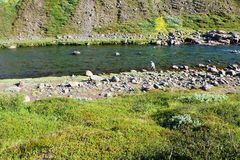 Rannsóknir Veiðimálastofnunar í Selá í Vopnafirði sýna að landnám laxa í efri hluta árinnar gengur vel. Þessa ályktun draga sérfræðingar af dreifingu þeirra ellefu laxa sem merktir voru síðsumars með merkjum sem gefa frá sér útvarpsmerki, en merkin gera það kleift að fylgjast með hverjum þeirra úr flugvél. Í ágúst 2010 var opnaður nýr fiskvegur í Efrifossi sem er 28 kílómetra frá sjó en opnar víðáttumikil svæði til viðbótar fyrir lax. Teljari er í nýja fiskveginum og gengu um 90 laxar um hann á liðnu sumri. Eftir merkingarnar í ágúst flugu sérfræðingar fyrst til leitar 5. október og þá voru laxarnir tiltölulega hnappdreifðir við þá staði sem þeir voru merktir á, en höfðu mjakast upp á við. Í flugferðum sem farnar voru 21. október og 15. nóvember höfðu laxarnir dreift vel úr sér og hrygning greinilega í algleymingi. Efsti fiskur var þá kominn um 9 kílómetra upp fyrir Efrifoss. Er þetta framar vonum hve fljótt laxinn nemur land, því í samskonar merkingu árið 2011 höfðu laxarnir ekki gengið nema um 4 kílómetra upp ána, en þá fundust einnig tveir laxar upp í hliðaránni Selsá sem einnig er nýr landnámsstaður. Á vef Veiðimálastofnunar segir einnig að rannsóknir fara fram árlega á því hvar seiði finnast á þessu svæði sem verður borið saman við rannsóknir á dreifingu fullorðna laxins. Er samanburður þessara tveggja rannsókna einkar spennandi, að mati Veiðimálastofnunar. Svæðið frá Efrifossi að hliðaránni Hrútá eru rúmlega 11 kílómetra en það var fyrsta markmið að laxinn dreifði sér þangað og styttist í að það verði að veruleika. Á þessu svæði eru góð búsvæði fyrir lax. Töluvert margir kílómetrar eru fiskgengir þar fyrir ofan en þau svæði eru lítt könnuð með tilliti til uppeldisskilyrða fyrir laxinn. svavar@frettabladid.is