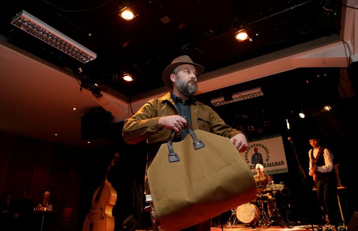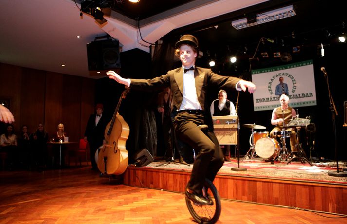 Hin árlega herrafatasýning Herrafataverzlunar Kormáks & Skjaldar var haldin í Þjóðleikhúskjallaranum á miðvikudagskvöld. Fullt hús áhorfenda skemmti sér konunglega þegar leikarar, glaumgosar og önnur glæsimenni komu fram í fatnaði verslunarinnar. Herrafatasýningin er orðinn fastur punktur í skemmtanaflóru Reykvíkinga. Hún hefur verið haldin í fjölmörg ár og einkennist jafnan af mikilli gleði, húmor og stemmningu. Fengnir eru þjóðþekktir menn til að koma fram, bæði til að sýna fatnaðinn og hin ýmsu atriði. Sýningin í ár var ekki frábrugðin að þessu leyti. Fríður flokkur strunsaði fram og aftur sviðið undir taktföstu undirspili sveitarinnar Hr. Ingi R. á meðan kynnarnir Ragnar Ísleifur Bragason og Karl Th. Birgisson héldu utan um herlegheitin. Logi Bergmann Eiðsson, Ari Eldjárn, Herbert Guðmundsson, Dúettinn Djass og fleiri skemmtu síðan gestum af sinni alkunnu snilli á meðan sýningardrengir skiptu um klæðnað baksviðs. Einnig stigu á stokk þingmennirnir Guðmundur Steingrimsson og Björn Valur Gíslason vopnaðir harmonikku og gítar. Þeir fluttu af miklum krafti blússlagarann Roðlaust og beinlaust, sem Björn Valur hefur áður gert frægan með samnefndri hljómsveit. Einna mesta athygli vakti síðan glæný lína fatamerkisins Kormákur & Skjöldur, sem fatahönnuðurinn Guðmundur Jörundsson hannaði, og rennur nú út eins og heitar lummur að sögn búðardrengja hjá Kormáki og Skildi. Vilhelm Gunnarsson ljósmyndari tók fjölda mynda baksviðs á sýningunni sem og frammi í sal. Smellið á myndina hér fyrir ofan til að fletta safninu.Herbert Guðmundsson og Lísa Dögg Helgadóttir.Árni Vilhjálmsson tónlistarmaður og Hilmar Guðjónsson leikari.Sindri Kjartansson, Arnþrúður Dögg, Sigtryggur Magnason og Svandís Einarsdóttir.