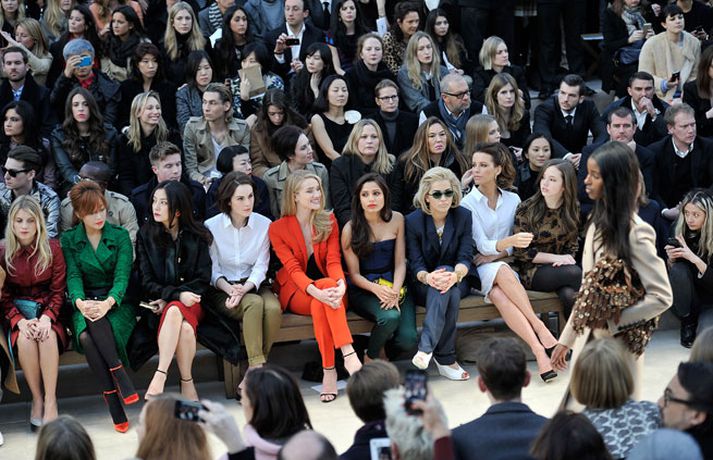 Haust og- vetrarlína tískuhússins Burberry Prorsum var sýnd á tískuvikunni í London í gær. Fékk hún lof gagnrýnenda eins og við var að búast, en þó var það fólkið sem sat á fremsta bekk sem vakti ekki síðri athygli. Greinilegt er að hönnun Burberry Prorsum fellur vel í kramið hjá stórstjörnum í kvikmynda, tísku og –tónlistarheiminum, en Rita Ora, Kate Beckinsale, Rosie Huntington Whiteley og Anna Wintour voru meðal þeirra sem nutu sýningarinnar af besta stað.Rosie Huntington-Whiteley stórglæsileg í rauðri dragt.Rita Ora mætti líka í dragt.Olivia Palermo er alltaf dömuleg. Hér sést hún ganga inn á sýninguna.Kate Beckinsale var hvítklædd og glæsileg.Tískudrottningin Anna Wintour.Freida Peinto mætti að sjálfsögðu klædd Burberry.