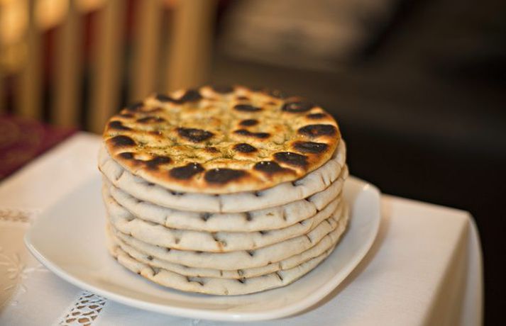 Sigurþór Gunnlaugsson á fleiri matreiðslubækur en hann hefur tölu á og les þær eins og góðar bókmenntir. Hann ferðast oft til Sádi-Arabíu vegna vinnu sinnar og hefur lært að meta matarmenningu landsins. Hann gefur hér uppskriftir að arabískri veislu.Arabískur matur er hættulega bragðgóður og seiðandi eins og ævintýrin í 1001 nótt,“ segir Sigurþór. Hann bætir við að í hvert sinn sem arabar setjist niður til að matast megi búst við veislu enda iðulega margréttað í boði. Veisluréttina sem Sigurþór gefur uppskrift að eldaði hann upp úr bókunum „Ottolenghi: The Cookbook“ og „Jerusalem“. „Þær eru skrifaðar af mönnum sem eru fæddir árið 1968 með aðeins nokkurra vikna millibili, hvor sínum megin við Jerúsalem. Yotam Ottolenghi er fæddur í Ísrael og Sami Tamimi fæddist í Palestínu. Um tíma bjuggu þeir báðir í sama hverfinu í Tel Avív en það var ekki fyrr en þeir fluttust til London og fóru að vinna í sama bakaríinu við að hnoða brauð að þeir kynntust og opnuðu síðar einn af vinsælustu matsölustöðum Lundúna sem heitir Ottolenghi og er í Islington,“ lýsir Sigurþór og hvetur alla sem eiga þar leið um til að smakka matinn þeirra.Spínatsalat með döðlum og hnetumFyrir 4 1 msk. hvítvínsedik ½ rauðlaukur, skorinn þunnt 100 g steinlausar döðlur skornar í fernt 30 g ósaltað smjör 2 msk. ólífuolía 2 pítubrauð, rifin 75 g möndlur með hýði, saxaðar gróft 1 tsk. sítrónubörkur ½ tsk. salt ½ tsk. rauðar chili-flögur 150 g spínat 2 msk. sítrónusafi saltSetjið edik, lauk, döðlur ásamt skvettu af salti í skál og blandið vel með höndunum. Látið standa í um 20 mín. og hellið edikinu svo af. Á meðan er smjörið hitað og helmingurinn af ólífuolíunni, 1 msk. Setjið pítubrauðin ásamt möndlunum út í og eldið á meðalhita í um 4-6 mín. Hrærið allan tímann þangað til pítubrauðið er orðið stökkt og gullinbrúnt. Takið af hitanum og blandið sítrónuberkinum, chili-flögunum og ½ tsk. salti saman við. Látið kólna. Rétt áður en salatið er borið fram er spínatinu blandað saman við pítu-blönduna í stórri skál. Bætið við döðlunum, rauðlauknum, sítrónusafanum, afganginum af ólífuolíunni, 1 msk., og dálitlu salti.Grillað eggaldin með saffran-jógúrtsósuFyrir 4Saffran-jógúrtsósa örfáir saffranþræðir 3 msk. heitt vatn 180 g grísk jógúrt 1 hvítlauksrif, marið 2½ msk. sítrónusafi 3 msk. ólífuolíaLátið saffranþræði liggja í heitu vatni í lítilli skál í um 5 mín. Hellið út í skál sem inniheldur jógúrt, marið hvítlauksrif, sítrónusafa, ólífuolíu og örlítið salt. Hrærið þar til úr verður sósa með ljósgylltri áferð. Smakkið til og bætið út í salti ef þess gerist þörf. Kælið. Geymist í allt að þrjá daga í kæli.Grillað eggaldin og fleira 3 meðalstór eggaldin, skorin niður í 20 cm þykkar sneiðar eða báta 2 msk. ristaðar furuhnetur lófafylli af granateplafræjum 20 basilíkulauf ólífuolía, til að pensla gróft sjávarsalt og svartur piparHitið ofn á 220 gráðu hita. Raðið niðurskornu eggaldinsneiðum/bátum á ofnplötu. Penslið með olíu og saltið og piprið. Grillið í 25-30 mín., eða þar til sneiðar/bátar verða ljósbrúnar/ir að lit. Kælið. Eggaldinið geymist í allt að þrjá daga í kæli; látið standa við stofuhita áður en borið er fram. Stillið eggaldinsneiðum/bátum upp á stóran kringlóttan disk, þannig að sneiðar/bátar leggist ofan á hver aðra/hver annan. Hellið sósu rólega yfir, stráið furuhnetum og granateplafræjum ofan á og skreytið með basilíkulaufum í lokin.Marineraður lambahryggur með kóríander og hunangiFyrir 4 1 kg lambahryggur, skorinn í a.m.k. 2 cm kótilettur 20 g flatblaða steinselja, blöð og stilkar 30 g mynta, blöð og stilkar 30 g kóríander, blöð og stilkar 4 hvítlauksgeirar afhýddir 15 g ferskt engifer, afhýtt og skorið 3 rauðir chili, fræin fjarlægð ½ tsk. salt 50 ml sítrónusafi 60 ml sojasósa 120 ml ólífuolía 3 msk. hunang 2 msk. rauðvínsedik 4 msk. vatnSetjið kjötið í plast eða leirskál. Blandið öllu hinu innihaldinu saman í matvinnsluvél og hellið yfir kótiletturnar. Blandið vel saman, setjið sellófan yfir skálina og marinerið í ísskáp yfir nótt. Hitið ofninn í 200°C/180°C ef ofninn er með viftu. Setjið góða pönnu á hellu og hitið. Takið kjötið úr marineringunni og brúnið á pönnunni á öllum hliðum, u.þ.b. 5 mín. samtals. Setjið kjötið á ofnbakka og eldið í um 15 mín. fyrir létteldað eða lengur ef þess er óskað. Hellið marineringunni í pott og látið malla í um 5 mín. Setjið lambakótiletturnar á fat og berið fram ásamt marineringunni. Bæði kjötið og marineringuna er hægt að bera fram heitt eða við stofuhita.Arabískt eplasalatFyrir um 8 3 stk. hnúðkál sirka 750 g (eða um 5 epli) 80 g grísk jógúrt 70 g sýrður rjómi 50 g rjómi (36%) 1 stk. hvítlauksgeiri, saxaður fínt 1½ tsk. sítrónusafi 1 msk. ólífuolía 2 msk. fersk mynta, söxuð 1 tsk. þurrkuð mynta 20 g vatnakarsi/brunnperla (eða blanda af klettasalati og spínati) salt og hvítur piparAfhýðið hnúðkálið (eplin) og skerið í um 1,5 cm teninga og setjið í stóra skál. Ef notast á við epli, setjið þau í plastskál og kreistið sítrónu yfir svo þau verði síður brún. Setjið jógúrt, sýrðan rjóma, rjóma, hvítlauk, sítrónusafa og ólífuolíu ásamt ¼ tsk. af salti og vel af hvítum pipar í skál og hrærið vel saman. Hellið sósunni yfir hnúðkálið/eplin og bætið út í fersku og þurrkuðu myntunni ásamt helmingnum af vatnakarsanum og blandið varlega saman. Áður en salatið er borið fram er restinni af vatnakarsanum dreift yfir ásamt örlitlu af mildu paprikudufti.Appelsínu- og möndlukakaFyrir 8-10 200 g ósaltað smjör 380 g str