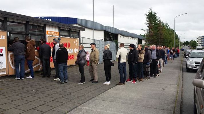 200 miðar óseldir 9. júlí 2014 19:27 Biðröð myndaðist við miðasölu KR í dag. Mynd/KR.is Aðeins 200 miðar eru óseldir á leik KR og Celtic í forkeppni Meistaradeildar Evrópu. Sala miða á leikinn hófst í dag og var mikill áhugi á meðal stuðningsmanna KR. Þá er einnig von á 250 Skotum á leikinn. Leikurinn fer fram á þriðjudaginn í næstu viku en síðari viðureignin í Edinborg í Skotlandi viku síðar. KR opnar miðasöluna á nýjan leik klukkan 12.00 á morgun. Meistaradeild Evrópu Tengdar fréttir Miðasalan gengur vel á leikinn gegn Celtic Helmingur allra miða sem í boði eru á leik KR og Celtic voru farnir þegar klukkutími var liðinn af miðasölunni. 9. júlí 2014 13:30 Mest lesið Sjáðu geggjaðan snúning Alberts áður en hann skoraði frábært mark Fótbolti Bunting dró orð sín til baka með tárin í augunum: „Ég er ekki meistari fólksins“ Sport Sakaður um svindl á HM í pílukasti Sport Táningur fær mikið hrós fyrir viðbrögð sín þegar mótherji missti meðvitund Fótbolti Áhorfendur ærðust eftir mögulega mark mótsins í fyrsta leik Fótbolti Klappstýrur Björgvins Karls slógu í gegn Sport Óskar Hrafn um komu Arnórs Ingva: „Gífurlega dýrmætt fyrir KR“ Íslenski boltinn Stórstjarna úr WNBA-deildinni í heimsókn á Íslandi Körfubolti „Ef þið væruð Antoine Semenyo, hvert mynduð þið fara?“ Enski boltinn Guardiola mun vigta leikmenn Man City eftir jólin Enski boltinn Fleiri fréttir Mbappé breytti um fagn af góðu tilefni „Allir virðast elska hann“ Meira en 37 stöðugildi hjá Knattspyrnusambandi Íslands Táningur fær mikið hrós fyrir viðbrögð sín þegar mótherji missti meðvitund „Þetta mun ekki buga okkur“ Guardiola mun vigta leikmenn Man City eftir jólin „Ef þið væruð Antoine Semenyo, hvert mynduð þið fara?“ Freyr himinlifandi með íslensku strákana Sjáðu geggjaðan snúning Alberts áður en hann skoraði frábært mark Óskar Hrafn um komu Arnórs Ingva: „Gífurlega dýrmætt fyrir KR“ Áhorfendur ærðust eftir mögulega mark mótsins í fyrsta leik Sjáðu mörkin: Rogers sá um Manchester United Hleður Kjartan lofi eftir frábæra frumraun með Aberdeen Óttast að Isak hafi fótbrotnað Túfa gerir þriggja ára samning í Svíþjóð Arnór Ingvi orðinn leikmaður KR Albert skoraði í fyrsta sigri Fiorentina Bæjarar aftur á sigurbraut Tvenna frá Rogers tryggði Villa sigur gegn Manchester United Barcelona með fjögurra stiga forskot inn í nýtt ár Alvöru innkoma: Kjartan með stoðsendingu gegn Celtic í sínum fyrsta leik Sandra María hetjan og með þeim markahæstu í Þýskalandi Katla skoraði annan leikinn í röð Tómas Bent og félagar unnu Rangers og náðu átta stiga forskoti á toppnum Breiðablik kaupir Jónatan frá Norrköping Hildur áfram í bikarnum og Amanda enn á toppnum Fimmta sinn sem Arsenal er á toppnum um jólin: Unnu ekki titilinn í fyrstu fjögur skiptin „Viljum við að okkar verði minnst fyrir að vera skræfur?“ „Ef dómarinn hefði sinnt sínu starfi almennilega hefði Romero ekki fengið spjald“ Haaland gaf barnabarni Hareide gjöf Sjá meira