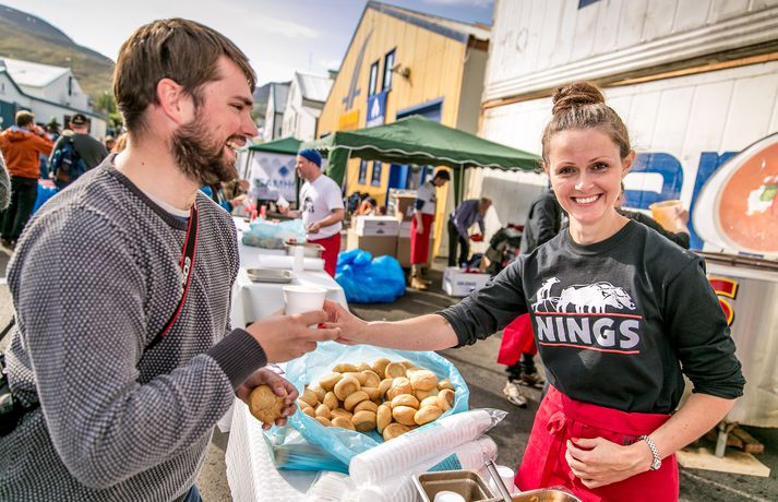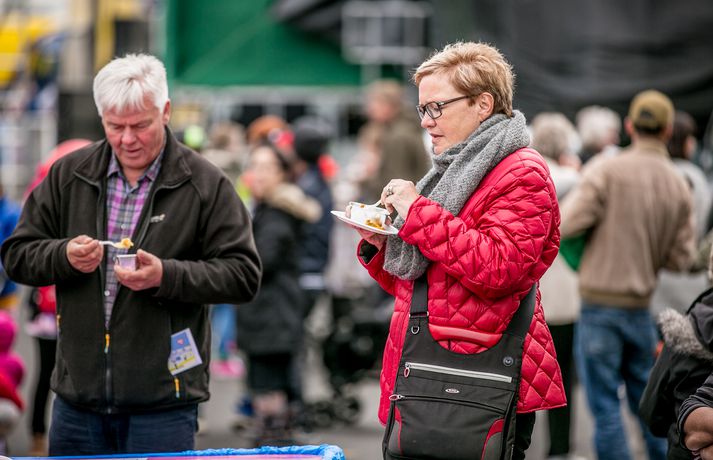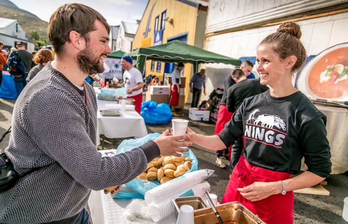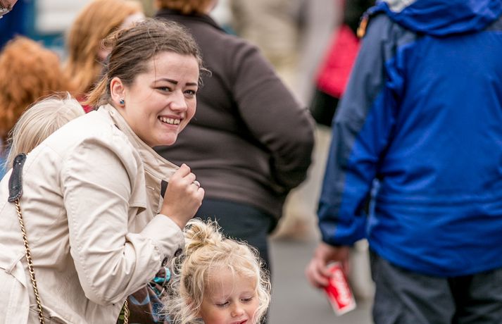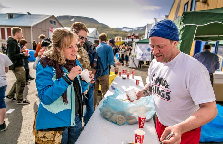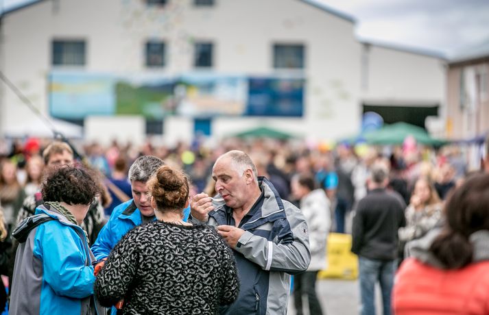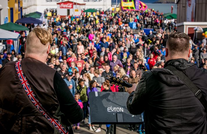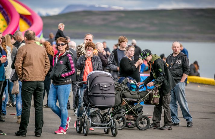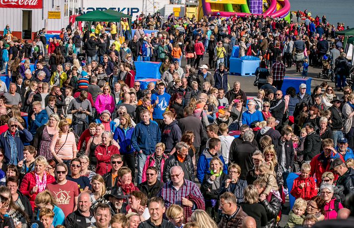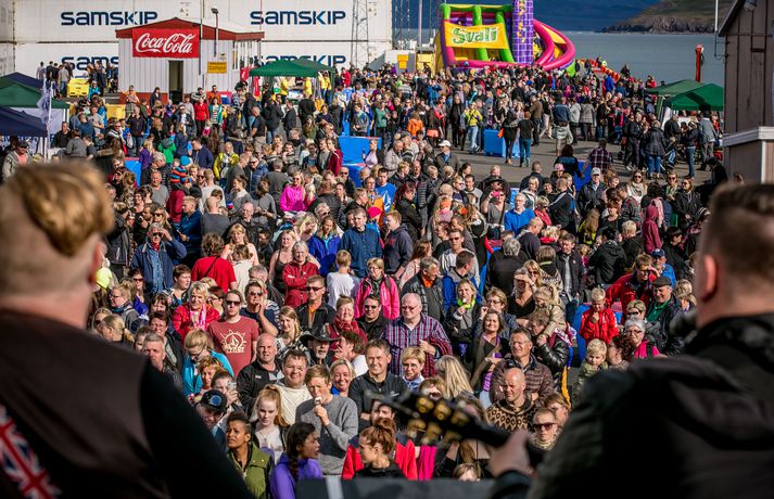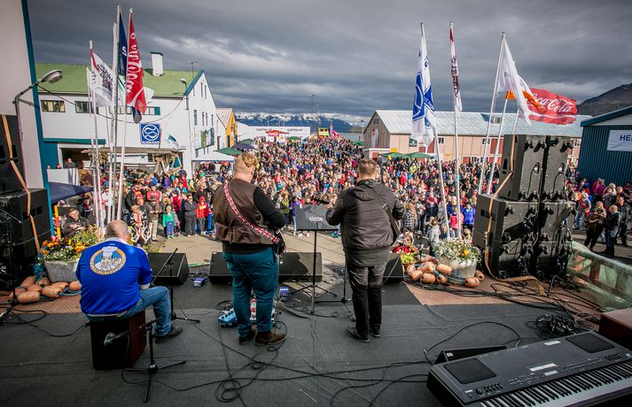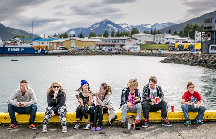 Frábær stemning var á Fiskideginum mikla sem haldinn var í dag í fjórtánda sinn í Dalvíkurbyggð. Auðunn Níelsson, ljósmyndari, var á staðnum og geta því lesendur Vísis fengið nasaþefinn af stemningunni. Fjöldi fólks gerði sér glaðan dag en markmið hátíðarinnar er að koma saman, hafa gaman og borða fisk. Fjölmargir fiskiréttir voru í boði og gæddu sér bæði ungir sem aldnir á kræsingunum. Á annað hundrað skemmtikraftar koma fram á hátíðinni og er að venju mikil áhersla lögð á fjölskylduna. Fiskidagurinn mikli er fjölskylduhátíð og voru á staðnum skemmtikraftar á borð við Eyþór Inga Gunnlaugsson, Eurovision stjörnu og Friðrik Ómar Hjörleifsson, söngvara. Hápunktur hátíðarinnar verður í kvöld þegar boðið verður til risa tónlistarveislu sem endar með flugeldasýningu sem björgunarsveitin á Dalvík setur upp. Herlegheitin eru í boði Samherja.Eins og sjá má margfaldaðist íbúafjöldi Dalvíkurbyggðar í dag á Fiskideginum.Vísir/Auðunn