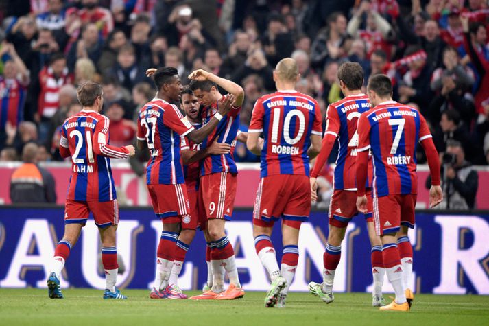 Robben hetja Bayern Anton Ingi Leifsson skrifar 1. nóvember 2014 19:22 Bæjarar fagna. Bayern Munchen vann Dortmund í stórleik dagsins í þýsku úrvalsdeildinni í fótbolta. Arjen Robben var hetjan, en hann skoraði sigurmarkið fimm mínútum fyrir leikslok. Marco Reus kom Dortmund yfir eftir rúman hálftíma með frábærum skalla eftir fyrirgjöf Pierre-Emerick Aubameyang. Heimamenn sóttu án afláts, en þeir náðu ekki að jafna fyrir hálfleik. Eftir hlé hélt sóknin áfram án afláts og stíflan brást á 72. mínútu þegar Robert Lewandowski skoraði gegn sínu gömlu félögum með hörkuskoti. Heimamenn í Bayern fengu svo vítaspyrnu fimm mínútum fyrir leikslok þegar Subotic braut á varamannium Frank Ribery. Robben fór á punktinn og skoraði. Lokatölur 2-1, en með sigrinum eru þeir með fjögurra stiga forystu á toppnum. Dortmund er hins vegar í fallsæti með sex stig. Þýski boltinn Mest lesið Sakaður um svindl á HM í pílukasti Sport Óttast að Isak hafi fótbrotnað Enski boltinn Hleður Kjartan lofi eftir frábæra frumraun með Aberdeen Fótbolti Ótrúleg tíðindi á HM í pílukasti: „Mikið sjokk“ Sport Hjalti Þór ráðinn aðalþjálfari Álftaness Körfubolti HM í pílu: Littler flaug áfram og kvöldinu lauk með spennutrylli Sport Albert skoraði í fyrsta sigri Fiorentina Fótbolti Arnór Ingvi orðinn leikmaður KR Íslenski boltinn Dómarinn hlýtur mikið lof fyrir stundarbræði í garð Jake Paul og Joshua Sport Túfa gerir þriggja ára samning í Svíþjóð Fótbolti Fleiri fréttir Hleður Kjartan lofi eftir frábæra frumraun með Aberdeen Óttast að Isak hafi fótbrotnað Túfa gerir þriggja ára samning í Svíþjóð Arnór Ingvi orðinn leikmaður KR Albert skoraði í fyrsta sigri Fiorentina Bæjarar aftur á sigurbraut Tvenna frá Rogers tryggði Villa sigur gegn Manchester United Barcelona með fjögurra stiga forskot inn í nýtt ár Alvöru innkoma: Kjartan með stoðsendingu gegn Celtic í sínum fyrsta leik Sandra María hetjan og með þeim markahæstu í Þýskalandi Katla skoraði annan leikinn í röð Tómas Bent og félagar unnu Rangers og náðu átta stiga forskoti á toppnum Breiðablik kaupir Jónatan frá Norrköping Hildur áfram í bikarnum og Amanda enn á toppnum Fimmta sinn sem Arsenal er á toppnum um jólin: Unnu ekki titilinn í fyrstu fjögur skiptin „Viljum við að okkar verði minnst fyrir að vera skræfur?“ „Ef dómarinn hefði sinnt sínu starfi almennilega hefði Romero ekki fengið spjald“ Haaland gaf barnabarni Hareide gjöf Sjáðu mörkin úr enska: Sviptingar, sænskt þema og svakalegar tæklingar Madrídingar anda ofan í hálsmálið á Börsungum Calvert-Lewin hættir ekki að skora Gyökeres skaut Arsenal aftur á toppinn Ronaldo á nærbuxunum lætur Elon Musk efast um sjálfan sig Orri Steinn kominn með nýjan þjálfara Slot fámáll um stöðuna á Isak Gleði og sorg í sigri Liverpool Real Madrid - Sevilla | Tekst að róa ástandið fyrir jól? Willum spilaði sinn fyrsta leik í tæpa fjóra mánuði Dramatík er Broja reyndist hetja Burnley Haaland frábær er Manchester City komst á toppinn Sjá meira