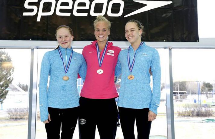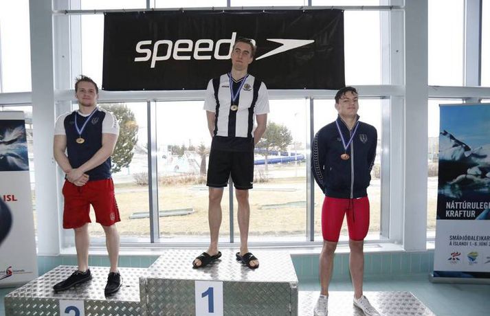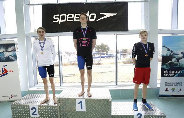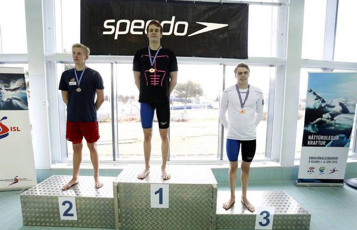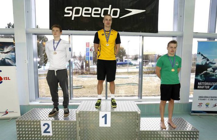 Eygló Ósk Gústafsdóttir úr Ægi setti ekki bara Íslandsmet í 200 metra baksundi á Íslandsmeistaramótinu í 50 metra laug í kvöld því þetta var einnig Norðurlandamet hjá henni.Andri Marinó Karlsson, ljósmyndari Vísis og Fréttablaðsins, var á fyrsta degi á ÍM og tók þessar myndir hér fyrir ofan. Eygló Ósk bætti nefnilega ellefu daga gamalt Íslands- og Norðurlandamet sitt í 200m baksundi þegar hún synti á 2:09.36 mínútum en gamla metið hennar var 2:09.86 mínútna sund í Danmörku í lok mars. Blönduð sveit SH setti Íslandsmet í 4x50m fjórsundi í blönduðum flokki þegar þau syntu á 1:51,33. Sveitina skipuðu Kolbeinn Hrafnkelsson, Hrafnhildur Lúthersdóttir, Predrag Milos og Ingibjörg Kristín Jónsdóttir. Brynjólfur Óli Karlsson úr Breiðabliki eigið drengjamet í 50m baksundi þegar hann fór fyrsta sprett í boðsundi á 29,30 sekúndum. Gamla metið var 29,92 sekúndur frá því í fyrra. Brynjólfur setti svo annað drengjamet í 200 metra baksundi og var það 20 ára gamalt met Arnar Arnarsonar. Brynjólfur synti á 2:14,65 mínútum en gamla met Arnar var 2:16,30 mínútur. Sveit ÍRB setti stúlknamet í 4x200 skriðsunds boðsundi þegar þær syntu á 8:51,89 mínútum. Eydís Ósk Kolbeinsdóttir, Sunneva Dögg Friðriksdóttir, Stefanía Sigþórsdóttir og Íris Ósk Hilmarsdóttir skipuðu sveitina. Gamla metið átti sveit ÍRB einnig en það var 8:52,51 mínútur frá því í nóvember 2013.