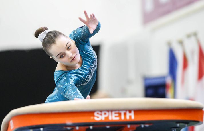 Íslensku stelpurnar unnu til fernra gullverðlauna | Myndir Ingvi Þór Sæmundsson skrifar 3. júní 2015 20:36 Það sáust glæsileg tilþrif í Ármannsheimilinu í dag. vísir/vilhelm Íslensku keppendurnir héldu áfram að gera það gott í fimleikakeppninni á Smáþjóðaleikunum sem fara fram hér á landi þessa dagana.Vilhelm Gunnarsson, ljósmyndari Fréttablaðsins og Vísis, var í Ármannsheimilinu og tók myndirnar sem fylgja fréttinni. Í kvennaflokki vann Norma Dögg Róbertsdóttir til tveggja gullverðlauna; í stökki og á jafnvægisslá. Norma fékk 14,000 stig í stökki en silfurverðlaunin komu í hlut Sigríðar Bergþórsdóttur sem fékk 13,450 stig. Norma fékk 12,900 stig á jafnvægisslá en Thelma Rut Hermannsdóttir lenti í 6. sæti með 11,550 stig. Thelma vann sigur í gólfæfingum en hún fékk 13,300 stig. Sigríður Bergþórsdóttir kom fast á hæla hennar með 12,900 stig. Myndband af gólfæfingum Thelmu má sjá hér að neðan. Dominiqua Belányi bar sigur úr býtum í keppni á tvíslá en hún hlaut 12,600 stig fyrir æfingar sínar. Peppijna Dalli frá Möltu fékk 11,800 stig í 2. sæti. Tinna Óðinsdóttir hafnaði í 5. sæti með 10,100 stig. Í karlaflokki vann Valgarð Reinhardsson til fernra silfurverðlauna; í gólfæfingum, bogahesti, tvíslá og jafnvægisslá. Eyþór Baldursson fékk bronsverðlaun á jafnvægisslá. Öll úrslit í kvennaflokki má sjá með því að smella hér og öll úrslit í karlaflokki með því að smella hér. Fimleikar Mest lesið Einkunnir Íslands: Þrjár heitastar í frostinu Fótbolti Vísar slúðrinu til föðurhúsanna Enski boltinn Albert og Mikael Egill í vondum málum á Ítalíu Fótbolti Ísak Bergmann lagði upp gegn Bayern Fótbolti „Við tókum bara þá ákvörðun að fara í Svanavatnið“ Fótbolti Uppgjörið: Njarðvík - Grindavík 85-84| Njarðvík fyrstar til að leggja Grindavík af velli Körfubolti Palace neitar að sleppa takinu á Liverpool Enski boltinn „Eitthvað sem ég mun aldrei gleyma“ Fótbolti Ótrúleg dramatík í Garðabæ og á Sauðárkróki Körfubolti Uppgjörið: Ísland - Norður-Írland 3-0 | Áfram hluti af elítunni Íslenski boltinn Fleiri fréttir Dagskráin í dag: Íslenskur körfubolti og margt fleira Vísar slúðrinu til föðurhúsanna Uppgjörið: Njarðvík - Grindavík 85-84| Njarðvík fyrstar til að leggja Grindavík af velli Ísak Bergmann lagði upp gegn Bayern „Við tókum bara þá ákvörðun að fara í Svanavatnið“ Albert og Mikael Egill í vondum málum á Ítalíu „Snérist um að sýna okkar ‘identity’ sem lið“ Palace neitar að sleppa takinu á Liverpool „Eitthvað sem ég mun aldrei gleyma“ Ótrúleg dramatík í Garðabæ og á Sauðárkróki Janus Daði myndaður í heimsókn hjá Barcelona Landsliðsmennirnir öflugir í Evrópu Einkunnir Íslands: Þrjár heitastar í frostinu Viktor Bjarki skoraði og lagði upp í fyrsta byrjunarliðsleiknum Uppgjörið: Ísland - Norður-Írland 3-0 | Áfram hluti af elítunni Pedri gæti verið frá keppni til langs tíma Arteta fyrstur stjóranna á fætur Þorsteinn breytir engu á milli leikja Snjóbræðslukerfi Þróttar kom KSÍ til bjargar Tölur úr Bestu 2025: Klúðraði langflestum dauðafærum í sumar Gunnlaugur Árni í níunda sæti á heimslista Jordan gagnrýnir álagsstjórnun í NBA: Þú hefur skyldu til að láta sjá þig Segja spurningar vakna um stöðu Elísabetar Litu á hann sem risaeðlu en sjáið hvað er í tísku núna Formaðurinn hjálpaði til við að moka völlinn Skiptiborð hjá stelpunum í kvöld Var með skattinn á hælunum þegar hann fór í veðmálabraskið Formenn sambandanna hjálpuðu við að moka völlinn Real Madrid mun ekki refsa Vinícius Júnior Fluttu fréttir af snjónum í Reykjavík Sjá meira