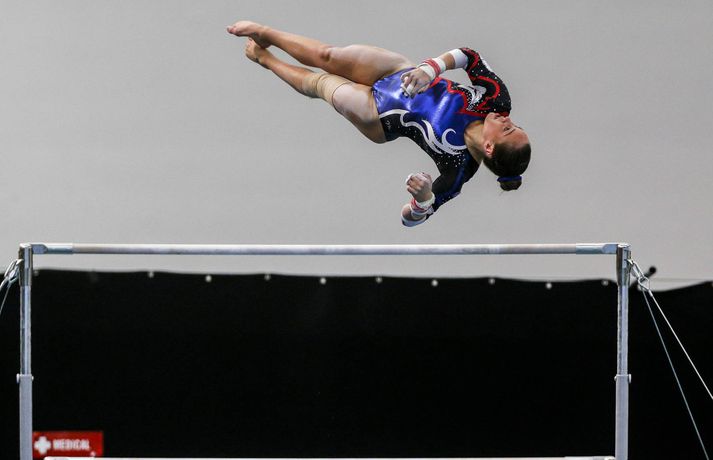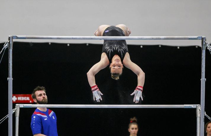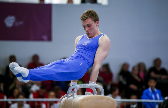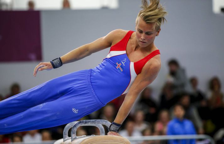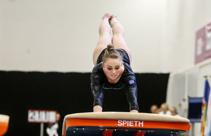 Íslensku keppendurnir héldu áfram að gera það gott í fimleikakeppninni á Smáþjóðaleikunum sem fara fram hér á landi þessa dagana.Vilhelm Gunnarsson, ljósmyndari Fréttablaðsins og Vísis, var í Ármannsheimilinu og tók myndirnar sem fylgja fréttinni. Í kvennaflokki vann Norma Dögg Róbertsdóttir til tveggja gullverðlauna; í stökki og á jafnvægisslá. Norma fékk 14,000 stig í stökki en silfurverðlaunin komu í hlut Sigríðar Bergþórsdóttur sem fékk 13,450 stig. Norma fékk 12,900 stig á jafnvægisslá en Thelma Rut Hermannsdóttir lenti í 6. sæti með 11,550 stig. Thelma vann sigur í gólfæfingum en hún fékk 13,300 stig. Sigríður Bergþórsdóttir kom fast á hæla hennar með 12,900 stig. Myndband af gólfæfingum Thelmu má sjá hér að neðan. Dominiqua Belányi bar sigur úr býtum í keppni á tvíslá en hún hlaut 12,600 stig fyrir æfingar sínar. Peppijna Dalli frá Möltu fékk 11,800 stig í 2. sæti. Tinna Óðinsdóttir hafnaði í 5. sæti með 10,100 stig. Í karlaflokki vann Valgarð Reinhardsson til fernra silfurverðlauna; í gólfæfingum, bogahesti, tvíslá og jafnvægisslá. Eyþór Baldursson fékk bronsverðlaun á jafnvægisslá. Öll úrslit í kvennaflokki má sjá með því að smella hér og öll úrslit í karlaflokki með því að smella hér.