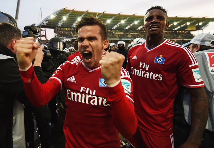 Hamburg bjargaði sæti sínu Eiríkur Stefán Ásgeirsson skrifar 1. júní 2015 19:56 Leikmenn Hamburg fagna sigrinum í kvöld. Vísir/Getty Hamburg náði að bjarga sæti sínu í þýsku úrvalsdeildinni með naumindum eftir sigur á Karlsruhe í framlengdum leik í kvöld, 2-1. Þetta var síðari viðureign liðanna í umspili þeirra um laust sæti í þýsku úrvalsdeildinni en fyrri leiknum lauk með 1-1 jafntefli. Reinhold Yabo kom Karlsruhe yfir þegar stundarfjórðungur var til leiksloka en Marcelo Diaz tryggði Hamburg framlengingu með marki úr vítaspyrnu á 90. mínútu. Nicolai Muller var svo hetja Hamburg er hann skoraði markið sem tryggði áframhaldandi veru liðsins í efstu deild með marki á 115. mínútu. Hamburg hefur átt í miklu basli undanfarin ár en liðið er það eina í sögu þýsku úrvalsdeildarinnar sem hefur aldrei fallið úr deildinni. Það breyttist ekki í ár. Þýski boltinn Mest lesið Dómarinn hlýtur mikið lof fyrir stundarbræði í garð Jake Paul og Joshua Sport Pílukastarinn biðst afsökunar á að hafa fallið á lyfjaprófinu og öllum lygunum Sport Tvenna frá Rogers tryggði Villa sigur gegn Manchester United Enski boltinn Haaland gaf barnabarni Hareide gjöf Enski boltinn Tvær títanplötur settar í Jake Paul eftir kjálkabrotið Sport Ronaldo á nærbuxunum lætur Elon Musk efast um sjálfan sig Fótbolti Albert skoraði í fyrsta sigri Fiorentina Fótbolti „Ef dómarinn hefði sinnt sínu starfi almennilega hefði Romero ekki fengið spjald“ Enski boltinn Sjáðu mörkin úr enska: Sviptingar, sænskt þema og svakalegar tæklingar Enski boltinn Stór nöfn úr leik á HM í pílukasti Sport Fleiri fréttir Bæjarar aftur á sigurbraut Tvenna frá Rogers tryggði Villa sigur gegn Manchester United Barcelona með fjögurra stiga forskot inn í nýtt ár Alvöru innkoma: Kjartan með stoðsendingu gegn Celtic í sínum fyrsta leik Sandra María hetjan og með þeim markahæstu í Þýskalandi Fiorentina - Udinese | Albert og félagar í skelfilegri stöðu Katla skoraði annan leikinn í röð Tómas Bent og félagar unnu Rangers og náðu átta stiga forskoti á toppnum Breiðablik kaupir Jónatan frá Norrköping Hildur áfram í bikarnum og Amanda enn á toppnum Fimmta sinn sem Arsenal er á toppnum um jólin: Unnu ekki titilinn í fyrstu fjögur skiptin „Viljum við að okkar verði minnst fyrir að vera skræfur?“ „Ef dómarinn hefði sinnt sínu starfi almennilega hefði Romero ekki fengið spjald“ Haaland gaf barnabarni Hareide gjöf Sjáðu mörkin úr enska: Sviptingar, sænskt þema og svakalegar tæklingar Madrídingar anda ofan í hálsmálið á Börsungum Calvert-Lewin hættir ekki að skora Gyökeres skaut Arsenal aftur á toppinn Ronaldo á nærbuxunum lætur Elon Musk efast um sjálfan sig Orri Steinn kominn með nýjan þjálfara Slot fámáll um stöðuna á Isak Gleði og sorg í sigri Liverpool Real Madrid - Sevilla | Tekst að róa ástandið fyrir jól? Willum spilaði sinn fyrsta leik í tæpa fjóra mánuði Dramatík er Broja reyndist hetja Burnley Haaland frábær er Manchester City komst á toppinn Skagastrákarnir áttu misjöfnu gengi að fagna Afríkukeppnin verður haldin á fjögurra ára fresti Andri Lucas skoraði í langþráðum sigri Blackburn Chelsea vann upp tveggja marka forskot á St James' Park Sjá meira