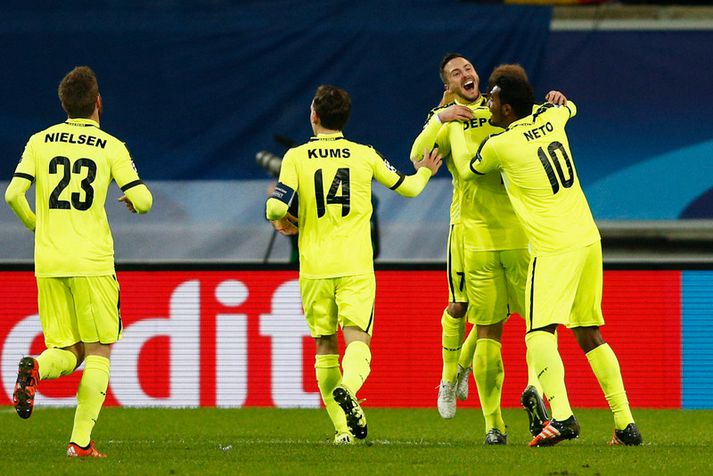 Gary Neville tapaði fyrsta leiknum og Gent fór áfram | Úrslitin í Meistaradeildinni Óskar Ófeigur Jónsson skrifar 9. desember 2015 19:45 Gent komst áfram í sextán liða úrslit Meistaradeildarinnar í kvöld. Vísir/Getty Ensku liðin Arsenal og Chelsea tryggðu sér bæði sæti í sextán liða úrslitum Meistaradeildarinnar í kvöld en þau voru ekki þau einu sem fögnuðu sæti í útsláttarkeppninni. Roma frá Ítalíu, Dynamo Kiev frá Úkraínu og Gent frá Belgíu komust einnig áfram upp úr sínum riðlum í kvöld. Bayer Leverkusen, Olympiakos, Porto og Valencia eru hinsvegar öll á leiðinni í Evrópudeildina. Gary Neville stjórnaði spænska Valencia í fyrsta sinn en mátti sætta sig við 2-0 tap á heimavelli á móti Lyon. Lyon endaði í neðsta sæti riðilsins en tapið gaf belgíska liðinu tækifæri á því að komast í sextán liða úrslitin. Zenit St. Petersburg var búið að vinna fimm fyrstu leiki sína í H-riðlinum en Danijel Milicevic tryggði Belgunum í Gent 2-1 sigur tólf mínútum fyrir leikslok. Gent náði þar með öðru sætinu á kostnað lærisveina Gary Neville. Það var líka mikil dramatík um hvort Roma, Bayer Leverkusen eða BATE Borisov myndu fylgja Barcelona í sextán liða úrslitin. Lionel Messi kom Barcelona yfir snemma leiks en Javier Hernández náði að jafna metin. Þýska liðið þurfti eitt mark í viðbót en það kom ekki og Roma fór áfram á markalausu jafntefli á móti BATE Borisov á heimavelli.Úrslit og markaskorara í Meistaradeildinni í kvöld:E-riðillBayer Leverkusen - Barcelona 1-1 0-1 Lionel Messi (20.), 1-1 Javier Hernández (23.)Roma - BATE Borisov 0-0Lokastaða riðilsins: Barcelona 14, Roma 6, Bayer Leverkusen 6, BATE Borisov 5.F-riðillOlympiakos - Arsenal 0-3 0-1 Olivier Giroud (29.), 0-2 Olivier Giroud (49.), 0-3 Olivier Giroud (67.)Dinamo Zagreb - Bayern München 0-2 0-1 Robert Lewandowski (61.), 0-2 Robert Lewandowski (64.)Lokastaða riðilsins: Bayern München 15, Arsenal 9, Olympiakos 9, Dinamo Zagreb 3.G-riðillChelsea - Porto 2-0 1-0 Sjálfsmark Iván Marcano (12.), 2-0 Willian (52.)Dynamo Kiev - Maccabi Tel Aviv 1-0 1-0 Denys Harmash (16.)Lokastaða riðilsins: Chelsea 13, Dynamo Kiev 11, Porto 10, Maccabi Tel Aviv 0.H-riðillGent - Zenit St. Petersburg 2-1 1-0 Laurent Depoitre (18.), 1-1 Artyom Dzyuba (65.), 2-1 Danijel Milicevic (78.)Valencia - Lyon 0-2 0-1 Maxwel Cornet (37.), 0-2 Alexandre Lacazette (76.)Lokastaða riðilsins: Zenit St. Petersburg 15, Gent 10, Valencia 6, Lyon 4. Meistaradeild Evrópu Mest lesið Bunting dró orð sín til baka með tárin í augunum: „Ég er ekki meistari fólksins“ Sport Sjáðu geggjaðan snúning Alberts áður en hann skoraði frábært mark Fótbolti Sakaður um svindl á HM í pílukasti Sport Áhorfendur ærðust eftir mögulega mark mótsins í fyrsta leik Fótbolti Klappstýrur Björgvins Karls slógu í gegn Sport Óskar Hrafn um komu Arnórs Ingva: „Gífurlega dýrmætt fyrir KR“ Íslenski boltinn Ótrúleg tíðindi á HM í pílukasti: „Mikið sjokk“ Sport Óttast að Isak hafi fótbrotnað Enski boltinn Freyr himinlifandi með íslensku strákana Fótbolti „Ef þið væruð Antoine Semenyo, hvert mynduð þið fara?“ Enski boltinn Fleiri fréttir Guardiola mun vigta leikmenn Man City eftir jólin „Ef þið væruð Antoine Semenyo, hvert mynduð þið fara?“ Freyr himinlifandi með íslensku strákana Sjáðu geggjaðan snúning Alberts áður en hann skoraði frábært mark Óskar Hrafn um komu Arnórs Ingva: „Gífurlega dýrmætt fyrir KR“ Áhorfendur ærðust eftir mögulega mark mótsins í fyrsta leik Sjáðu mörkin: Rogers sá um Manchester United Hleður Kjartan lofi eftir frábæra frumraun með Aberdeen Óttast að Isak hafi fótbrotnað Túfa gerir þriggja ára samning í Svíþjóð Arnór Ingvi orðinn leikmaður KR Albert skoraði í fyrsta sigri Fiorentina Bæjarar aftur á sigurbraut Tvenna frá Rogers tryggði Villa sigur gegn Manchester United Barcelona með fjögurra stiga forskot inn í nýtt ár Alvöru innkoma: Kjartan með stoðsendingu gegn Celtic í sínum fyrsta leik Sandra María hetjan og með þeim markahæstu í Þýskalandi Katla skoraði annan leikinn í röð Tómas Bent og félagar unnu Rangers og náðu átta stiga forskoti á toppnum Breiðablik kaupir Jónatan frá Norrköping Hildur áfram í bikarnum og Amanda enn á toppnum Fimmta sinn sem Arsenal er á toppnum um jólin: Unnu ekki titilinn í fyrstu fjögur skiptin „Viljum við að okkar verði minnst fyrir að vera skræfur?“ „Ef dómarinn hefði sinnt sínu starfi almennilega hefði Romero ekki fengið spjald“ Haaland gaf barnabarni Hareide gjöf Sjáðu mörkin úr enska: Sviptingar, sænskt þema og svakalegar tæklingar Madrídingar anda ofan í hálsmálið á Börsungum Calvert-Lewin hættir ekki að skora Gyökeres skaut Arsenal aftur á toppinn Ronaldo á nærbuxunum lætur Elon Musk efast um sjálfan sig Sjá meira