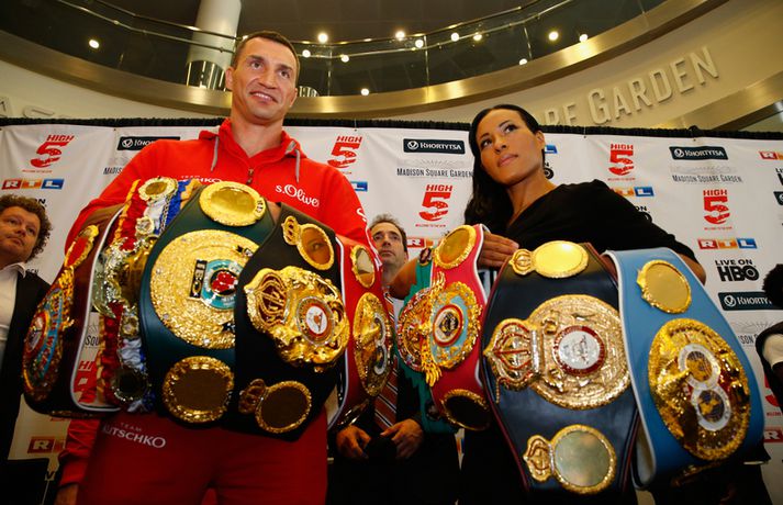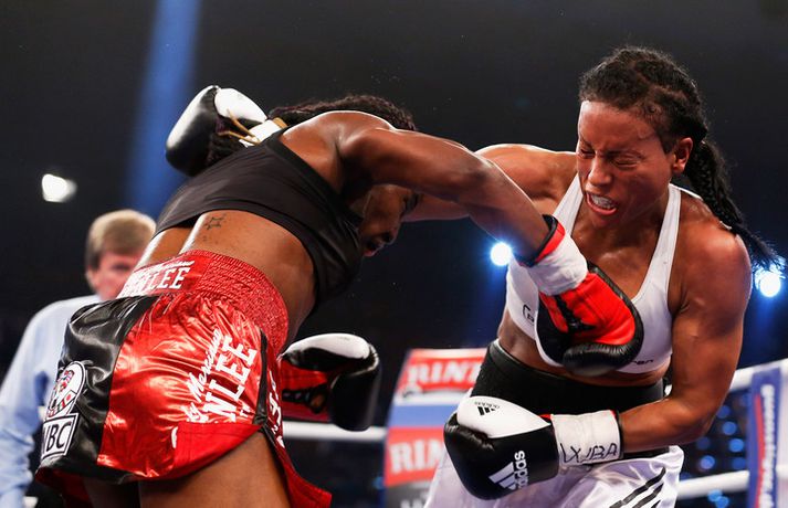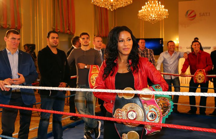 Hin norska Cecilia Brækhus er á góðri leið með að verða ein frægasti boxari heimsins og þjálfarinn hennar er sannfærður um að hún verði ein af þeim allra stærstu í boxsögunni. Frammistaða Cecilia Brækhus vekur mikla athygli á boxi í Noregi svona svipað eins og frammistaða Gunnars Nelson vekur mikla athygli á UFC á Íslandi. Cecilia Brækhus fer næst inn í hringinn á móti Chris Namus frá Úrúgvæ um næstu helgi en boxbardagi þeirra fer fram í Halle í Þýskalandi. Jonathon Banks er nýr þjálfari Cecilia Brækhus en hann var sjálfur liðtækur boxari. Banks hefur einnig þjálfað Wladimir Klitschko og þekkir því vel til. Brækhus meiddist illa á fæti í síðasta bardaga sínum og hefur því ekki keppt síðan í nóvember 2014. Hún er því að stíga inn í hringinn í fyrsta sinn í fjórtán mánuði. Jonathon Banks efast ekki um hæfileika hinnar 34 ára gömlu Cecilia Brækhus sem hefur unnið alla 27 bardaga sína á ferlinum. Hann spáir mikilli velgengi hjá Brækhus. „Hún er ekki nálægt toppnum sínum ennþá. Ég er sannfærður um að menn muni tala um hana í sömu setningu og kappa eins og Floyd Mayweather og alla hina stærstu boxara sögunnar," sagði Jonathon Banks á blaðamannafundi fyrir komandi bardaga en Dagbladet í Noregi segir frá. Floyd Mayweather vann alla 47 boxbardagana á sínum ferli og hefur lagt hanskana á hilluna ósigraður. Cecilia Brækhus þarf að vinna tuttugu í viðbót til að jafna þann árangur en hún er handhafi fjögurra belta í dag. „Cecilia er ein af þeim allra bestu og hún er mögulega klárari en þeir allir," sagði Banks. Vísir/GettyVísir/Getty