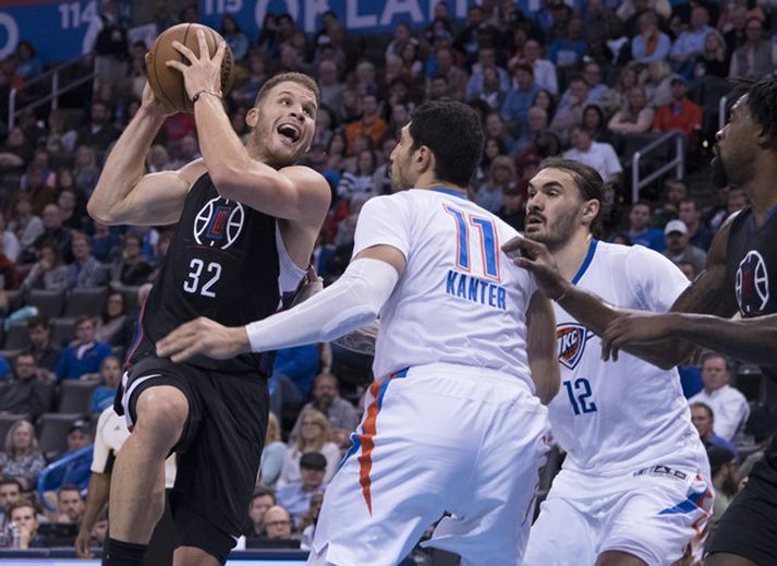 Dramatík í Oklahoma | Myndbönd Ingvi Þór Sæmundsson skrifar 12. nóvember 2016 11:26 Blake Griffin skoraði 25 stig í sigrinum á Oklahoma. vísir/afp Átta leikir fóru fram í NBA-deildinni í körfubolta í nótt. Los Angeles Clippers hefur aldrei farið jafn vel af stað og þessu tímabili og í nótt vann liðið Oklahoma City Thunder, 108-110, á útivelli. Russell Westbrook var í miklum ham í liði Oklahoma; skoraði 29 stig, tók 14 fráköst og gaf níu stoðsendingar, en hann klikkaði á lokaskotinu þegar tvær sekúndur voru eftir. Blake Griffin var stigahæstur í liði Clippers með 25 stig. Jamal Crawford skilaði 19 stigum af bekknum og Chris Paul skoraði 17 stig og gaf tíu stoðsendingar. LeBron James skoraði 27 stig, tók tíu fráköst og gaf fimm stoðsendingar þegar Cleveland Cavaliers vann 11 stiga sigur, 94-105, á Washington Wizards á útivelli. Cleveland er með bestan árangur allra liða í Austurdeildinni en meistararnir hafa unnið sjö af fyrstu átta leikjum sínum. Kyrie Irving var einnig öflugur í liði Cleveland í höfuðborginni í nótt og skoraði 29 stig. Þá gerði Kevin Love 14 stig og tók 16 fráköst. Boston Celtics átti ekki í miklum vandræðum með að leggja New York Knicks að velli, 115-87, í TD Garden í Boston. Isiah Thomas fór fyrir Boston-mönnum með 29 stig en sjö leikmenn liðsins skoruðu tíu stig eða meira í leiknum í nótt. Kristpas Porzingis var stigahæstur í slöku liði Knicks með 14 stig.Úrslitin í nótt: Oklahoma 108-110 LA Clippers Washington 94-105 Cleveland Boston 115-87 NY Knicks Philadelphia 109-105 Indiana Charlotte 111-113 Toronto Orlando 74-87 Utah San Antonio 96-86 Detroit Portland 122-120 SacramentoLeBron James og Kyrie Irving skoruðu samtals 56 stig fyrir Cleveland Damian Lillard fór mikinn í sigri Portland Flottustu tilþrif næturinnar NBA Mest lesið Sakaður um svindl á HM í pílukasti Sport Óttast að Isak hafi fótbrotnað Enski boltinn Hleður Kjartan lofi eftir frábæra frumraun með Aberdeen Fótbolti Hjalti Þór ráðinn aðalþjálfari Álftaness Körfubolti Ótrúleg tíðindi á HM í pílukasti: „Mikið sjokk“ Sport HM í pílu: Littler flaug áfram og kvöldinu lauk með spennutrylli Sport Dómarinn hlýtur mikið lof fyrir stundarbræði í garð Jake Paul og Joshua Sport Túfa gerir þriggja ára samning í Svíþjóð Fótbolti Albert skoraði í fyrsta sigri Fiorentina Fótbolti Arnór Ingvi orðinn leikmaður KR Íslenski boltinn Fleiri fréttir Hjalti Þór ráðinn aðalþjálfari Álftaness Kolbrún María kom við sögu í endurkomu Hannover Næstframlagshæstur í grátlegu tapi Fékk næstum 4,5 milljóna króna sekt fyrir að sýna dómara fingurinn „Komum eins og aumingjar inn í þennan leik“ „Jólasteikin mun bragðast betur í ljósi þessa sigurs“ Stjarnan - Álftanes 108-104 | Unnu grannaslaginn naumlega Uppgjörið: Ármann - ÍA 102-83 | Ármann náði í gríðarlega mikilvæg stig í fallbaráttunni með sigri gegn Skagamönnum Jokic tók NBA-met af Abdul-Jabbar í nótt KR á frábærum stað en getur ekki unnið titilinn Útilokar ekki breytingar: „Er klárlega að líta í kringum mig“ Uppgjörið: Keflavík - Njarðvík 93-83 | Enn taplausir í Sláturhúsinu „Ánægður að spila ekki betur en þetta en vinna samt“ „Svo lengi sem það er ekki jákvæð og góð umfjöllun um okkur erum við sáttir“ „Hefðum þurft að hafa heppnina með okkur í liði“ ÍR - Valur 82-85 | Baráttusigur í Breiðholti „Sáttur að geta farið heim, borðað vel og fengið mér nokkra kalda“ Tindastóll - KR 130-117 | Kláruðu gestina í seinni hálfleik Þór Þ. - Grindavík 94-106 | Baráttusigur gegn löskuðu liði Þórs Liðsfélagar Guðbjargar ekki fæddir þegar hún spilaði fyrsta leikinn Þola þeir ekki gott umtal? „Helmingur minna leikmanna skilur ekki íslensku“ „Ef við hefðum ekki verið að setja þessi skot þá hefðum við skíttapað“ KR á toppinn Uppgjörið: Grindavík - Haukar 92-93 | Fullkomin jólagjöf Spilaði 13 mínútur en var stigahæstur Rýndu í gamlar myndir: „Svakalega ertu kringlóttur í framan“ Guðbjörg fyrsta konan í fjögur hundruð leikina Stjarnan og Grindavík mætast í bikarnum Tryggvi og Sara best á árinu New York Knicks vann titil í nótt Sjá meira