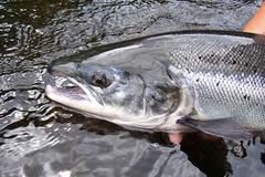 Varmá er ein af vinsælli vorveiðiám landsins en þeir sem þekkja ánna vita líka vel að hún getur verið ólíkindartól. Það er alls ekki svo að það sé hægt að ganga að vísri veiði í Varmá þó hún geti verið gjöful því fiskurinn er oft á tíðum styggur og er fljótur að stinga sér undir bakkann ef hann verður var við mannaferðir á bakkanum og það er ótrúlegt að sjá hvað margir fiskar geta horfið á augabragði ef nálgunin á hyl er ekki með mestu varúð. Það hefur þess vegna reynst best að ganga upp eftir ánni og veiða hana fyrst andstreymis áður en hylurinn er veiddur niður og þá skiptir líka máli að fara vel frá bakkanum þegar maður færir sig til. Það er loksins að lifna yfir tökunni í Varmá samkvæmt fréttum frá SVFR en veiðimenn sem voru þar í gær lentu í fínni töku en þeir settu í 16 fiska en misstu 11 en kölluðu sig því góða að ná 5 flottum birtingum á land og þar af einni fallegri hrygnu eins og sést á myndinni. Það getur verið dagamunur á því hvernig takan er eins og gefur að skilja en rystjótt veður þykir jafnan gott því þá verður fiskurinn ekki eins var við veiðimenn sem eru að kasta flugu á bakkanum. Gallinn, ef galla skildi kalla, er aftur á móti að það getur verið slítandi að standa við ánna í leiðindarveðri. Það má þess vegna nefna að það er komið nýtt veiðihús við Varmá og er það kærkomið þegar pásur eru teknar frá veiðinni eða þá til að ná smá yl í skrokkinn eftir köst í köldu veðri.