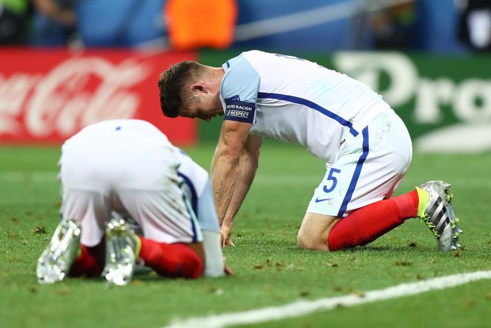The Sun: Ísland í martraðariðli Englands Tómas Þór Þórðarson skrifar 12. október 2017 09:45 Þeir ensku áttu erfiða daga eftir tapið í Hreiðrinu í Nice. vísir/getty Þrátt fyrir að pakka saman sínum riðli í undankeppni HM 2018 verður England í öðrum styrkleikaflokki þegar dregið verður til riðlakeppni heimsmeistaramótsins í Rússlandi. England er því alltaf að fara að mæta einhverju af liðunum í efsta styrkleikaflokki sem eru Þýskaland, Brasilía, Portúgal, Argentína, Belgía, Pólland og Frakkland. Enska götublaðið The Sun setur upp í dag martraðariðil og draumariðil fyrir enska liðið en í martraðariðlinum er íslenska landsliðið. Enskir eru ekki enn þá komnir yfir 2-1 tapið í Hreiðrinu í Nice á EM 2016 í fyrra og The Sun vill greinilega hvorki sjá né heyra Víkingaklappið aftur. Auk Ísland í martraðariðlinum eru Brasilía og Nígería sem eru tvö bestu lið Suður-Ameríku og Afríku en í draumariðli Englands eru Rússar, Íranar og Nýsjálendingar. HM 2018 í Rússlandi Tengdar fréttir Þjóðhetjan Pyry Soiri vill koma til Íslands Pyry Soiri, leikmanni finnska landsliðsins, langar að heimsækja Ísland. 11. október 2017 19:39 Ísland fyrir ofan England og Kólumbíu á styrkleikalista fyrir HM Enska blaðið Guardian setur upp styrkleikalista fyrir liðin sem eru komin til Rússlands. 11. október 2017 11:30 Kínverjar segja strákana okkar á leiðinni að spila vináttuleik í Guangzhou KSÍ getur ekkert staðfest en ráðgjafar eru að vinna í þessum málum fyrir sambandið. 12. október 2017 09:00 Mest lesið Sakaður um svindl á HM í pílukasti Sport Hleður Kjartan lofi eftir frábæra frumraun með Aberdeen Fótbolti Óttast að Isak hafi fótbrotnað Enski boltinn Ótrúleg tíðindi á HM í pílukasti: „Mikið sjokk“ Sport Hjalti Þór ráðinn aðalþjálfari Álftaness Körfubolti HM í pílu: Littler flaug áfram og kvöldinu lauk með spennutrylli Sport Túfa gerir þriggja ára samning í Svíþjóð Fótbolti Körfuboltakvöld: Tilþrif tímabilsins til þessa Körfubolti Arnór Ingvi orðinn leikmaður KR Íslenski boltinn Dagskráin í dag: Sá elsti á HM í pílu og enski boltinn Sport Fleiri fréttir Hleður Kjartan lofi eftir frábæra frumraun með Aberdeen Óttast að Isak hafi fótbrotnað Túfa gerir þriggja ára samning í Svíþjóð Arnór Ingvi orðinn leikmaður KR Albert skoraði í fyrsta sigri Fiorentina Bæjarar aftur á sigurbraut Tvenna frá Rogers tryggði Villa sigur gegn Manchester United Barcelona með fjögurra stiga forskot inn í nýtt ár Alvöru innkoma: Kjartan með stoðsendingu gegn Celtic í sínum fyrsta leik Sandra María hetjan og með þeim markahæstu í Þýskalandi Katla skoraði annan leikinn í röð Tómas Bent og félagar unnu Rangers og náðu átta stiga forskoti á toppnum Breiðablik kaupir Jónatan frá Norrköping Hildur áfram í bikarnum og Amanda enn á toppnum Fimmta sinn sem Arsenal er á toppnum um jólin: Unnu ekki titilinn í fyrstu fjögur skiptin „Viljum við að okkar verði minnst fyrir að vera skræfur?“ „Ef dómarinn hefði sinnt sínu starfi almennilega hefði Romero ekki fengið spjald“ Haaland gaf barnabarni Hareide gjöf Sjáðu mörkin úr enska: Sviptingar, sænskt þema og svakalegar tæklingar Madrídingar anda ofan í hálsmálið á Börsungum Calvert-Lewin hættir ekki að skora Gyökeres skaut Arsenal aftur á toppinn Ronaldo á nærbuxunum lætur Elon Musk efast um sjálfan sig Orri Steinn kominn með nýjan þjálfara Slot fámáll um stöðuna á Isak Gleði og sorg í sigri Liverpool Real Madrid - Sevilla | Tekst að róa ástandið fyrir jól? Willum spilaði sinn fyrsta leik í tæpa fjóra mánuði Dramatík er Broja reyndist hetja Burnley Haaland frábær er Manchester City komst á toppinn Sjá meira