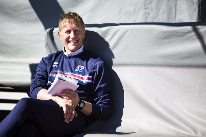 Erum að hugsa tvö til þrjú ár fram í tímann Henry Birgir Gunnarsson skrifar 14. nóvember 2017 06:00 Heimir Hallgrímsson nýtur lífsins í Katar. vísir/eyþór „Síðustu dagar hafa verið mjög góðir. Þessi ferð er blanda af afslöppun og að hrista hópinn saman á öðrum sviðum en fótbolta. Það hefur í raun allt heppnast þannig að ég held að það séu allir ánægðir með þetta,“ segir Heimir Hallgrímsson landsliðsþjálfari en á meðan mörg af stærstu landsliðum Evrópu berjast um sæti á HM er íslenska landsliðið að sleikja sólina í Katar og leika sér á sjóköttum og kameldýrum. Það er þó verið að spila fótbolta líka. Strákarnir eru þegar búnir að spila við Tékka og í dag spila þeir gegn heimamönnum í Katar. „Það er hart að dæma menn eftir leikinn gegn Tékkum því hann var erfiður á margan hátt. Við höfum samt notað nokkra punkta úr þeim leik til að búa okkur undir Katar-leikinn. Það verður allt öðruvísi leikur,“ segir Heimir en hvernig leik er hann að búast við?Gæti verið opinn leikur „Þetta gæti orðið opinn leikur. Katar er með léttleikandi og hraða leikmenn. Góðir með boltann og vilja taka menn á. Spila hratt með jörðinni. Við ætlum aftur á móti að skipta leiknum í tvennt og gera tvo mismunandi hluti. Við munum skipta mörgum inn í hálfleik. Við munum jafnvel vera með sitt hvora leikaðferðina í hvorum hálfleik.“ Heimir gaf það út fyrir ferðina að þessir leikir væru tækifæri fyrir þá sem hefðu minna spilað til þess að sanna sig. „Við viljum sjá alla spila og það munu allir fá einhvern tíma á vellinum. Það er líka jákvætt að sem flestir fái að spila til þess að auka breiddina og fleiri séu tilbúnir að stökkva inn. Það er tilgangurinn með þessu verkefni. Ekki endilega að ná í jákvæð úrslit,“ segir þjálfarinn sem hefur verið ánægður með framlag leikmanna á æfingum. „Við höfum getað æft marga praktíska hluti og við erum líka að hugsa lengra en til Rússlands. Erum að hugsa tvö til þrjú ár fram í tímann þar sem bíða mörg erfið og skemmtileg verkefni. Þá viljum við geta leitað í stóran og breiðan hóp.“Diego á ferðinni í sínum fyrsta landsleik.vísir/gettyNýtt að vera með leikmann sem talar ekki íslensku Á meðal leikmanna sem eru að fá tækifæri núna er spænski Íslendingurinn Diego Jóhannesson. „Strákarnir hafa tekið honum vel. Það er nýtt fyrir okkur að vera með leikmann sem talar ekki íslensku en allir okkar fundir fara eðlilega fram á íslensku. Svo verður að túlka það mikilvægasta fyrir hann eftir fundinn. Það verður gaman að sjá hvað hann hefur fram að færa í leiknum gegn Katar. Ég veit að það eru aðrir, sem hafa minna séð til hans, sem bíða spenntari. Þetta er strákur sem spilar í góðu liði í góðri deild og er fínasti leikmaður. Öðruvísi týpa en við erum með. Sérstaklega góður sóknarlega og það tekur tíma að slípa sig inn í varnarleik eins og við spilum,“ segir Heimir en hann ætlar að láta Gylfa Þór Sigurðsson spila í dag.Gylfi spilar líklega „Þeir sem komu ekki heilir heilsu eins og Aron og Alfreð eru allir að koma til. Þeir geta vonandi farið inn í byrjunarlið sinna liða eftir þetta verkefni. Ég er aftur á móti nokkuð viss um að Gylfi muni spila í þessum leik,“ segir landsliðsþjálfarinn léttur. HM 2018 í Rússlandi Mest lesið Sakaður um svindl á HM í pílukasti Sport Dómarinn hlýtur mikið lof fyrir stundarbræði í garð Jake Paul og Joshua Sport Gleði og sorg í sigri Liverpool Enski boltinn Ronaldo á nærbuxunum lætur Elon Musk efast um sjálfan sig Fótbolti Joshua kjálkabraut Paul Sport Pílukastarinn biðst afsökunar á að hafa fallið á lyfjaprófinu og öllum lygunum Sport Tvenna frá Rogers tryggði Villa sigur gegn Manchester United Enski boltinn Arnór Ingvi orðinn leikmaður KR Íslenski boltinn Haaland gaf barnabarni Hareide gjöf Enski boltinn Ótrúleg tíðindi á HM í pílukasti: „Mikið sjokk“ Sport Fleiri fréttir Hleður Kjartan lofi eftir frábæra frumraun með Aberdeen Óttast að Isak hafi fótbrotnað Túfa gerir þriggja ára samning í Svíþjóð Arnór Ingvi orðinn leikmaður KR Albert skoraði í fyrsta sigri Fiorentina Bæjarar aftur á sigurbraut Tvenna frá Rogers tryggði Villa sigur gegn Manchester United Barcelona með fjögurra stiga forskot inn í nýtt ár Alvöru innkoma: Kjartan með stoðsendingu gegn Celtic í sínum fyrsta leik Sandra María hetjan og með þeim markahæstu í Þýskalandi Katla skoraði annan leikinn í röð Tómas Bent og félagar unnu Rangers og náðu átta stiga forskoti á toppnum Breiðablik kaupir Jónatan frá Norrköping Hildur áfram í bikarnum og Amanda enn á toppnum Fimmta sinn sem Arsenal er á toppnum um jólin: Unnu ekki titilinn í fyrstu fjögur skiptin „Viljum við að okkar verði minnst fyrir að vera skræfur?“ „Ef dómarinn hefði sinnt sínu starfi almennilega hefði Romero ekki fengið spjald“ Haaland gaf barnabarni Hareide gjöf Sjáðu mörkin úr enska: Sviptingar, sænskt þema og svakalegar tæklingar Madrídingar anda ofan í hálsmálið á Börsungum Calvert-Lewin hættir ekki að skora Gyökeres skaut Arsenal aftur á toppinn Ronaldo á nærbuxunum lætur Elon Musk efast um sjálfan sig Orri Steinn kominn með nýjan þjálfara Slot fámáll um stöðuna á Isak Gleði og sorg í sigri Liverpool Real Madrid - Sevilla | Tekst að róa ástandið fyrir jól? Willum spilaði sinn fyrsta leik í tæpa fjóra mánuði Dramatík er Broja reyndist hetja Burnley Haaland frábær er Manchester City komst á toppinn Sjá meira
