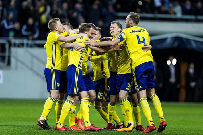 Þetta þarf að gerast til að Ísland komist í 2. styrkleikaflokk Ingvi Þór Sæmundsson skrifar 13. nóvember 2017 12:30 Svíar eru í góðri stöðu fyrir seinni leikinn gegn Ítölum. Það hentar Íslandi betur að Svíþjóð komist á HM. vísir/getty Ísland á enn möguleika á að vera í 2. styrkleikflokki þegar dregið verður í riðla á HM í Rússlandi 1. desember næstkomandi. Úrslitin í þremur af fjórum viðureignum í HM-umspili sem er eftir eru ráða því hvort Ísland verður í 2. eða 3. styrkleikaflokki. Íslenska liðið verður í 2. styrkleikaflokki ef Svíþjóð vinnur Ítalíu, Írland Danmörku og Nýja-Sjáland Perú.Ísland verður í 2. styrkleikaflokki á HM ef:- Svíar vinna Ítali- Írar vinna Dani- Nýja Sjáland vinnur PerúAnnars 3ja. #fotboltinet— Magnús Sigurbjörnsson (@sigurbjornsson) November 12, 2017 Fyrir leikina í umspilinu var ljóst að „litla liðið“, það sem er neðar á styrkleikalista FIFA, yrði að vinna þrjár af fimm viðureignum, eins og fjallað var um á Vísi í síðustu viku. Úrslitin í viðureignum Sviss (11.) og N-Írlands (23.) og Króatíu (18.) og Grikklands (47.) voru Íslandi óhagstæð. Sviss og Króatía höfðu sigur en þau eru ofar á styrkleikalistanum en Ísland sem situr í 21. sæti hans. Svíar og Ítalir mætast í Mílanó í kvöld. Sænska liðið er í góðri stöðu eftir 1-0 sigur í fyrri leiknum í Stokkhólmi. Ljóst er að það yrði mikið reiðarslag fyrir Ítalíu að komast ekki á HM en það hentar Íslendingum betur.Írland og Danmörk gerðu markalaust jafntefli í fyrri leiknum á Parken. Það er því allt opið fyrir seinni leikinn í Dublin annað kvöld. Það var heldur ekkert mark skorað í fyrri leik Nýja-Sjálands (122.) og Perú (10.) í Wellington. Perúmenn eru eflaust sáttari með þau úrslit. Þeir eru nokkuð öflugir á heimavelli og töpuðu aðeins tveimur af níu heimaleikjum sínum í Suður-Ameríkuriðlinum. Líkurnar eru Ný-Sjálendingum ekki í hag.Íslensku strákarnir geta bæði lent í 2. og 3. styrkleikaflokki.vísir/antonAf þeim 28 liðum sem eru komin á HM er ljóst í hvaða styrkleikaflokki 25 lið verða. Ísland og Króatía geta bæði lent í 2. eða 3. styrkleikaflokki og Serbía í 3. og 4. styrkleikaflokki.Styrkleikaflokkarnir líta svona út:1. styrkleikaflokkur: Rússland, Þýskaland, Brasilíu, Portúgal, Argentína, Belgía, Pólland, Frakkland2. styrkleikaflokkur: Spánn, Sviss, England, Kólumbía, Mexíkó, Úrúgvæ3. styrkleikaflokkur: Kosta Ríka, Túnis, Egyptaland, Senegal, Íran4. styrkleikaflokkur: Nígería, Japan, Túnis, Panama, Suður-Kórea, Sádí-Arabía HM 2018 í Rússlandi Tengdar fréttir Umdeild vítaspyrna færði Svisslendingum sigur í Belfast | Sjáið sigurmarkið Svisslendingar eru í fínum málum í umspili um sæti á HM í Rússlandi eftir 1-0 útisigur á Norður-Írlandi í fyrri leik liðanna í umspili um laust sæti á HM 2018. 9. nóvember 2017 21:30 Listamennirnir í fótboltalandsliðinu okkar | Myndir Leikmenn íslenska karlalandsliðsins í fótbolta taka þátt í að skapa nýtt íslensk fótboltafrímerki sem verður gefið út í tengslum við heimsmeistaramótið í Rússlandi næsta sumar. 10. nóvember 2017 18:47 Markalaust er Sviss komst á HM Sviss og Norður-Írland skildu jöfn 0-0 á St. Jakobs Park-vellinum í Basel í leik sem lauk rétt í þessu en eftir 1-0 sigur Sviss í fyrri leik liðanna á dögunum verður það Sviss sem fer á HM. 12. nóvember 2017 18:45 Varamaðurinn tryggði Svíum sigur á Ítölum með sinni fyrstu snertingu | Sjáið sigurmarkið Svíar fara með eins marks forskot í seinni leikinn á móti Ítalíu í umspili um sæti á heimsmeistaramótinu í Rússlandi næsta sumar. 10. nóvember 2017 22:15 Ef að það yrði ákveðið að HM yrði á Íslandi 2022 Íslenska karlalandsliðið tekur næsta sumar þátt í sínu fyrsta heimsmeistaramóti þegar strákarnir okkar verða með á HM í Rússlandi. 10. nóvember 2017 17:30 Örlög Íslands ráðast: Landsmenn ættu að halda með „litlu liðunum“ í umspilinu Úrslitin í umspili fyrir HM um helgina ræður því hvort Ísland verði í 2. eða 3. styrkleikaflokki þegar dregið verður í riðla fyrir HM 2018 í Rússlandi. 9. nóvember 2017 12:00 Sadio Mané með stoðsendingu þegar Senegal varð 24. þjóðin til að tryggja sig inn á HM Senegalar verða með Íslendingum á heimsmeistaramótinu í Rússlandi næsta sumar en þetta varð ljóst eftir sigur landsliðs Senegal í Suður-Afríku í kvöld. 10. nóvember 2017 19:11 Geir Þorsteins birtir mynd af snævi þöktum Laugardalsvellinum og sendir skýr skilboð Íslenska karlalandsliðið í fótbolta er nú við æfingar í sól og blíðu í Katar og þarf ekki að hafa miklar áhyggjur af snjókomunni á Íslandi en staðan hefði verið allt öðruvísi hefði íslenska liðinu ekki tekist að vinna sinn riðil í undankeppni HM í Rússlandi. 10. nóvember 2017 16:15 Túnis og Morokkó á HM Túnis og Morokkó tryggðu sæti sitt í lokakeppni Heimsmeistaramótsins í Rússlandi þegar undankeppni Afríkuþjóða lauk í dag. 11. nóvember 2017 19:33 Strákarnir okkar sparka í „sama“ bolta og Pelé á HM í Rússlandi Adidas kynnir nýja HM-boltann sem sækir innblástur til þess fyrsta sem fyrirtækið gerði. 10. nóvember 2017 09:00 Króatar í frábærum málum eftir stórsigur á Grikkjum á Maksimir | Sjáið mörkin Króatíska fótboltalandsliðið er komið með annan fótinn inn á HM í Rússlandi í sumar eftir 4-1 sigur á Grikkjum í kvöld í fyrri leik liðanna í umspili um laust sæti á HM 2018. 9. nóvember 2017 21:30 Bragðdauft jafntefli er Króatía komst á HM Það var fátt um fína drætti er Grikkland tók á móti Króatíu í seinni leik liðanna í umspili upp á sæti á HM en það verða Króatar sem verða meðal þátttökuþjóða á HM. 12. nóvember 2017 21:3