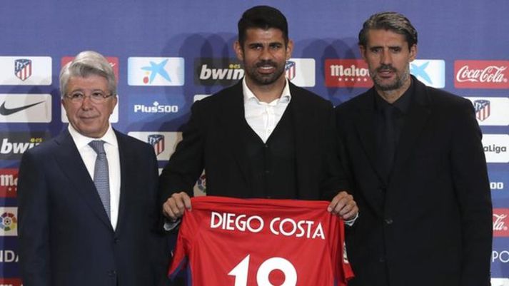 Costa má loks spila aftur Ástrós Ýr Eggertsdóttir skrifar 31. desember 2017 19:00 Costa er kominn heim, en hann fór frá Atletico til Chelsea árið 2014 mynd/bbc Diego Costa má snúa aftur á knattspyrnuvöllinn í næstu viku. Spánverjinn var ekki hluti af áætlunum Antonio Conte hjá Chelsea og var hann því seldur til Atletico Madrid í september. Costa hefur hins vegar ekkert mátt spila fyrir Madrid, því félagið er í félagsskiptabanni. Bannið rennur hins vegar sitt skeið um áramótin. „Ég hef beðið lengi eftir þessum degi. Ég er orðinn þreyttur á að æfa og þarf að spila,“ sagði Costa. Hann var formlega kynntur sem leikmaður Atletico í dag. Liðið mætir Lleida Esportiu í bikarleik á miðvikudaginn og þykir líklegt að Costa muni koma við sögu í þeim leik. Spænski boltinn Mest lesið Sakaður um svindl á HM í pílukasti Sport Hleður Kjartan lofi eftir frábæra frumraun með Aberdeen Fótbolti Óttast að Isak hafi fótbrotnað Enski boltinn Ótrúleg tíðindi á HM í pílukasti: „Mikið sjokk“ Sport Hjalti Þór ráðinn aðalþjálfari Álftaness Körfubolti HM í pílu: Littler flaug áfram og kvöldinu lauk með spennutrylli Sport Túfa gerir þriggja ára samning í Svíþjóð Fótbolti Körfuboltakvöld: Tilþrif tímabilsins til þessa Körfubolti Arnór Ingvi orðinn leikmaður KR Íslenski boltinn Albert skoraði í fyrsta sigri Fiorentina Fótbolti Fleiri fréttir Hleður Kjartan lofi eftir frábæra frumraun með Aberdeen Óttast að Isak hafi fótbrotnað Túfa gerir þriggja ára samning í Svíþjóð Arnór Ingvi orðinn leikmaður KR Albert skoraði í fyrsta sigri Fiorentina Bæjarar aftur á sigurbraut Tvenna frá Rogers tryggði Villa sigur gegn Manchester United Barcelona með fjögurra stiga forskot inn í nýtt ár Alvöru innkoma: Kjartan með stoðsendingu gegn Celtic í sínum fyrsta leik Sandra María hetjan og með þeim markahæstu í Þýskalandi Katla skoraði annan leikinn í röð Tómas Bent og félagar unnu Rangers og náðu átta stiga forskoti á toppnum Breiðablik kaupir Jónatan frá Norrköping Hildur áfram í bikarnum og Amanda enn á toppnum Fimmta sinn sem Arsenal er á toppnum um jólin: Unnu ekki titilinn í fyrstu fjögur skiptin „Viljum við að okkar verði minnst fyrir að vera skræfur?“ „Ef dómarinn hefði sinnt sínu starfi almennilega hefði Romero ekki fengið spjald“ Haaland gaf barnabarni Hareide gjöf Sjáðu mörkin úr enska: Sviptingar, sænskt þema og svakalegar tæklingar Madrídingar anda ofan í hálsmálið á Börsungum Calvert-Lewin hættir ekki að skora Gyökeres skaut Arsenal aftur á toppinn Ronaldo á nærbuxunum lætur Elon Musk efast um sjálfan sig Orri Steinn kominn með nýjan þjálfara Slot fámáll um stöðuna á Isak Gleði og sorg í sigri Liverpool Real Madrid - Sevilla | Tekst að róa ástandið fyrir jól? Willum spilaði sinn fyrsta leik í tæpa fjóra mánuði Dramatík er Broja reyndist hetja Burnley Haaland frábær er Manchester City komst á toppinn Sjá meira