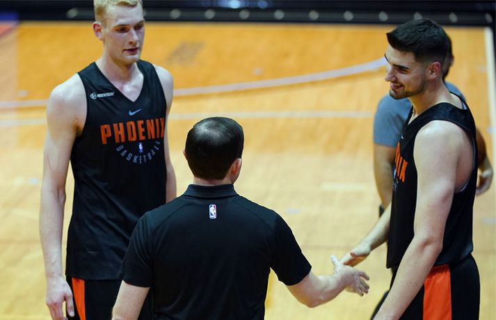 Nýliðavalið í NBA deildinni fer fram þann 21.júni og verður íslenski landsliðsmiðherjinn Tryggvi Snær Hlinason á meðal þátttakenda þar. Lið NBA deildarinnar nýta dagana fram að valinu til að skoða leikmenn og sum lið fá leikmenn til æfinga hjá sér. Tryggvi Snær er nú til skoðunar hjá Phoenix Suns en hann æfði þar ásamt Dusan Ristic í gær.Stutt myndband frá æfingunni var birt á heimasíðu NBA og má sjá með því að smella hér. Þar er einnig rætt stuttlega við Tryggva. Suns á fyrsta valrétt í nýliðavalinu í ár en eiga sömuleiðis valrétt númer 31 og 59 og gætu nýtt annan þeirra til að velja Tryggva. Samkvæmt orðrómum vestanhafs eru Brooklyn Nets sömuleiðis áhugasamir um Bárðdælinginn stóra og stæðilega. Saga Tryggva er strax farin að vekja athygli körfuboltaáhugamanna í Bandaríkjunum eins og sjá má á Twitter umræðum um kappann. Fari svo að Tryggvi Snær verði valinn og hann spili í NBA verður hann aðeins annar Íslendingurinn til að afreka það. Hinn er Pétur Guðmundsson sem var valinn í þriðju umferð nýliðavalsins árið 1981 af Portland Trail Blazers. Hann lék svo síðar með Los Angeles Lakers og San Antonio Spurs. Þá var Jón Arnór Stefánsson á mála hjá Dallas Mavericks árið 2003 en hann lék ekki deildarleik með liðinu. Iceland's Tryggvi Hlinason has gone from working on his family farm to trying out for #NBA teams, including the #Suns on Tue… https://t.co/blwf2tMgNL— Suns Social (@SunsSocial) June 13, 2018