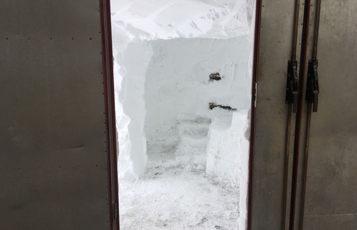 Það hefur snjóað duglega í Fnjóskadal undanfarna daga. Heimilisfólkið á Brúnagerði fór ekki varhluta af því eins og sjá má á meðfylgjandi myndum.Á Brúnagerði er starfræktur húsdýragarðurinn Daladýrð þar sem gefur að líta öll helstu húsdýr, kinda, hesta, geitur og grísi svo dæmi séu tekin. Þegar komið var út í gærmorgun hafði hins vegar snjóað svo mikið að inngangnum að útihúsinu að ekki var hægt að komast inn húsið til þess að fóðra dýrin.Guðbergur Egill Eyjólfsson, bóndi á Brúnagerði og félagar, brugðu það á það ráð að grafa snjógöng til þess að komast að dýrunum. Þeir létu ekki þar við sitja og útbjuggu einnig laglegt snjóhús, líkt og sjá má á meðfylgjandi myndum. Í samtali við Vísi segir Guðbergur að ekki hafi verið neitt annað í stöðunni en að moka sig inn í húsið, enda þurfti að fóðra dýrin. Hann og kona hans, Birna Friðriksdóttir, hafi hins vegar gengið aftur í barndóm við moksturinn og gert forláta snjóhús í leiðinni, á tveimur hæðum, hvorki meira né minna. Hér að neðan má sjá myndir af göngunum og snjóhúsinu.Mynd/Guðbergur Egill EyjólfssonMynd/Guðbergur Egill EyjólfssonMynd/Guðbergur Egill EyjólfssonMynd/Guðbergur Egill EyjólfssonMynd/Guðbergur Egill Eyjólfsson