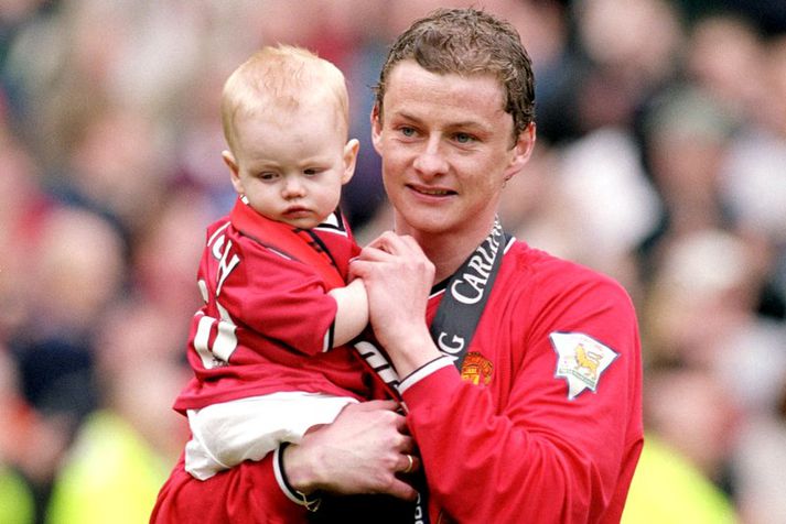 Sonur Ole Gunnar Solskjær spilar á móti Manchester United í kvöld Óskar Ófeigur Jónsson skrifar 30. júlí 2019 14:30 Ole Gunnar Solskjær með Noah son sinn eftir að hann varð Englandsmeistari með Manchester United árið 2001. Það var fjórði meistaratitilinn af sex sem Ole Gunnar vann með Manchester United. Getty/StuForster /Allsport Noah Solskjaer, 19 ára sonur Ole Gunnar Solskjær, spilar væntanlega sinn fyrsta leik með Kristiansund í kvöld. Svo vill til að leikurinn er á móti Manchester United. Manchester United mætir Kristiansund í dag í næst síðasta undirbúningsleik sínum fyrir tímabilið en leikurinn fer fram á Ullevaal Stadion í Osló. Ole Gunnar Solskjær fæddist í Kristiansund og hóf ferillinn með Clausenengen sem er lið frá bænum. Hann fór síðan þaðan til Molde og varð síðan orðinn leikmaður Manchester United 23 ára gamall. Solskjær snéri síðan aftur til Molde og var þjálfari liðsins þegar kallið kom frá Old Trafford. Hann tók fyrst við til bráðabrigða í desember 2018 en var síðan fastráðinn undir lok síðasta tímabils. Ole Gunnar er nú á sínu fyrsta undirbúningstímabili sem knattspyrnustjóri Manchester United. Hann er nú kominn með lið sitt heim til Noregs og fær nú tækifæri til að stýra því á móti stráknum sínum. Noah Solskjaer er í hópnum fyrir leik Kristiansund á móti Manchester United í kvöld. Leikurinn hefst 17.00 að íslenskum tíma.Imagine making your senior debut for your family's hometown club against Manchester United, the team managed by your father. It looks likely to happen ➡ https://t.co/d4yg7TiWr3#ManUtd#MUFC#bbcfootballpic.twitter.com/S6myBHM8UQ — BBC Sport (@BBCSport) July 30, 2019Noah Solskjær hefur enn ekki náð að spila fyrir aðallið Kristiansund en á að baki þrettán leiki með b-liði félagsins. Noah spilar ekki í fremstu víglínu eins og faðir sinn heldur inn á miðjunni. „Faðir hans var betri eftir því sem hann komst nærri vítateignum en Noah er meira leikmaður sem er að setja upp sóknir síns liðs,“ sagði Christian Michelsen, þjálfari Kristiansund. „Hann hefur mikla hæfileika og er með góðan skilning á fótbolta. Noah hefur farið í gegnum góðan skóla,“ sagði Michelsen. Noah sjálfur sagði það í viðtali nýlega að hann byggi ekki leik sinn á leik föðurs síns heldur horfi hann meira til leikmanns eins og Michael Carrick, fyrrum leikmanns Manchester United. „Ég er miklu meira sexa á miðjunni heldur en tía. Það væri gaman að fá að spila í þessum leik. Ég er búinn að sjá svo marga svona stórleiki að ég er orðinn vanur þeim,“ sagði Noah Solskjær en BBC segir frá. Enski boltinn Noregur Mest lesið Þessi tíu eru tilnefnd sem Íþróttamaður ársins 2025: 23 ára aldursmunur Sport Sakaður um niðurlægingu: „Við viljum ekki hafa hann sem þjálfara“ Handbolti Erfitt að vera í burtu þegar mamma greindist Fótbolti Einn leikmaður með samning og völlurinn ólöglegur Fótbolti Áfallið staðreynd og Isak búinn í aðgerð Enski boltinn Slot mun sakna Isak í tvo mánuði eftir „glórulausa tæklingu“ Enski boltinn Vildi tapa legg: „Mesti hávaði sem ég hef heyrt“ Sport Kansas frá Kansas til Kansas Sport Missti alveg stjórn á skapinu en það skilaði sigri Körfubolti Salah færði Egyptum draumabyrjun Fótbolti Fleiri fréttir Jiménez jafnaði bestu vítaskyttu sögunnar Slot mun sakna Isak í tvo mánuði eftir „glórulausa tæklingu“ Sjáðu „auma“ vítið sem skilaði Fulham sigri Fulham skildi Forest eftir við fallsvæðið Áfallið staðreynd og Isak búinn í aðgerð Fagnaði titli Liverpool sem óður maður um alla borg „Allir virðast elska hann“ „Þetta mun ekki buga okkur“ Guardiola mun vigta leikmenn Man City eftir jólin „Ef þið væruð Antoine Semenyo, hvert mynduð þið fara?“ Sjáðu mörkin: Rogers sá um Manchester United Óttast að Isak hafi fótbrotnað Tvenna frá Rogers tryggði Villa sigur gegn Manchester United Fimmta sinn sem Arsenal er á toppnum um jólin: Unnu ekki titilinn í fyrstu fjögur skiptin „Viljum við að okkar verði minnst fyrir að vera skræfur?“ „Ef dómarinn hefði sinnt sínu starfi almennilega hefði Romero ekki fengið spjald“ Haaland gaf barnabarni Hareide gjöf Sjáðu mörkin úr enska: Sviptingar, sænskt þema og svakalegar tæklingar Calvert-Lewin hættir ekki að skora Gyökeres skaut Arsenal aftur á toppinn Slot fámáll um stöðuna á Isak Gleði og sorg í sigri Liverpool Dramatík er Broja reyndist hetja Burnley Haaland frábær er Manchester City komst á toppinn Andri Lucas skoraði í langþráðum sigri Blackburn Chelsea vann upp tveggja marka forskot á St James' Park Ekkert fararsnið á Guardiola sem segir að City verði að vera undirbúið Tíu bestu mörkin úr leikjum Liverpool og Tottenham Salah bað samherjana afsökunar Lineker fokillur við blaðamann: „Þvílíkt kjaftæði“ Sjá meira