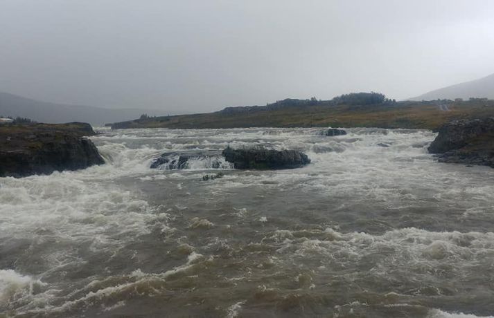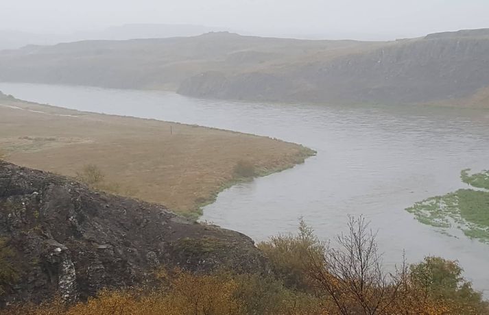 Árnar á vesturlandi í flóði Karl Lúðvíksson skrifar 20. september 2019 08:47 Horft niður í Efri Hvítstaðahyl í Langá í gær Mynd: Guðlaugur P. Frímannsson Það er annað hvort í ökkla eða eyra í laxveiðinni þetta árið en eftir eitt þurrasta sumar í manna minnum tekur við úrhelli á þessu hausti. Eftir að það fór að rigna og árnar á vesturlandi lyftu sér upp í gott vatn tók veiðin góðan kipp og lagaði annars mjög slakar tölur í ánum. Þessi tími með góðu vatni er liðinn og ljóst að haustveiðin á þessu tímabili er líklega búin nema árnar sjatni allverulega. Meðfylgjandi myndir eru úr nokkrum af þeim ám sem urðu hvað verst úti í þurrkunum í sumar og það er ótrúlegt að sjá vatnsmagnið í þeim núna í samanburði við hvernig útlitið var þegar það var verst. Þeir sem voru við bakkana í þessum ám hefðu líklega þegið brot af þessu vatni í sumar. Haustveiði er ennþá í gangi í Laxá í Dölum og í Langá en það er nokkuð ljóst að það verður varla mikið um veiði í þessu vatni. Mest lesið Hrútafjarðará löngu uppseld Veiði Fimm ára veiðikona með maríulax í Elliðaánum Veiði Hylurinn er vikulegt hlaðvarp um veiði Veiði Fín veiði í Kvíslaveitum Veiði Veiðigoðsögnin Völundur Þorsteinn er látinn Veiði Kvikmyndahátið fluguveiðimannsins Veiði Fyrstu laxarnir komnir á land við Urriðafoss Veiði Laxar farnir að sýna sig í ánum Veiði Laxveiðimenn fagna væntanlegri rigningu Veiði Mikið vatn gerir veiðimönnum ennþá erfitt fyrir Veiði