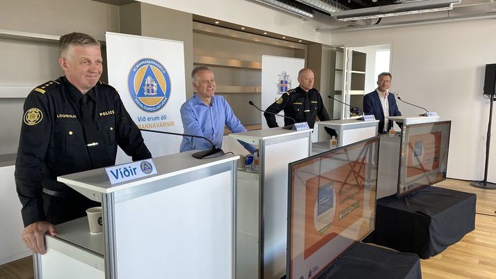 Aftur boðað til upplýsingafundar Stefán Ó. Jónsson skrifar 28. júlí 2020 10:24 Frá 88. upplýsingafundi almannavarna í síðustu viku. lögreglan Almannavarnadeild ríkislögreglustjóra og embætti landlæknis boða til upplýsingafundar í dag, örfáum dögum eftir að hafa boðað til „síðasta fundarins í bili“ Fundurinn hefst klukkan 14 venju samkvæmt og verður hann sýndur í beinni útsendingu á Vísi. Ætla má að boðað hafi verið til fundarins í dag vegna fjölgunar kórónuveirusmita hér á landi síðustu daga. Nú eru rúmlega 20 í einangrun vegna smits og hafa ekki verið fleiri síðan í maí. Hópsýking er komin upp á Akranesi sem rakin er til einstaklings sem kom til landsins 15. júlí síðastliðinn og sætti ekki heimkomusmitgát. Áttugasti og áttundi upplýsingafundur almannavarna fór fram á fimmtudag í síðustu viku, 23. júlí og var tilkynnt að það yrði að líkindum síðasti upplýsingafundurinn í bili. Verið væri að endurskoða upplýsingagjöf til almennings í faraldrinum til að létta álaginu af starfsmönnum framlínunnar. Í því samhengi var nefnt að að tölurnar á covid.is yrðu uppfærðar sjaldnar og aðeins verði haft samband við þá sem greinast með veiruna á landamærunum. Áður höfðu öll sem fóru í skimun við komuna til landsins fengið skilaboð frá almannavörnum. Á fundi dagsins munu Alma D. Möller landlæknir, Kamilla Sigríður Jósefsdóttir staðgengill sóttvarnalæknis og Sigríður Björk Guðjónsdóttir ríkislögreglustjóri fara yfir stöðu mála varðandi framgang COVID-19 faraldursins hér á landi. Sem fyrr segir hefst fundurinn klukkan 14 og verður í beinni útsendingu á Vísi og sjónvarpsstöðinni Stöð 2 Vísi. Faraldur kórónuveiru (COVID-19) Tengdar fréttir Svona var 88. upplýsingafundur almannavarna Almannavarnadeild ríkislögreglustjóra og embætti landlæknis boðuðu til upplýsingafundar fyrir fjölmiðla klukkan 14 í dag. 23. júlí 2020 13:49 Mest lesið „Ég hef aldrei upplifað annan eins harm“ Innlent Gaf fingurinn á Miklubraut Innlent Breiddi út faðminn fyrir rasista: „Þið þurfið ekki að biðjast afsökunar á að vera hvít lengur“ Erlent Hrindir af stað söfnun fyrir móður stúlkunnar sem lést í Suður-Afríku Innlent Hundrað og fjörutíu milljarða bótakrafa á Samherja sé súrrealísk Innlent „Þetta hefur verið þungur tími“ Innlent Ný könnun Maskínu: „Væri alveg ný staða í íslenskum stjórnmálum“ Innlent Ársæll hringdi beint í utanríkisráðherra eftir fundinn Innlent Sprengdu rússneskan hershöfðingja í loft upp í Moskvu Erlent Nýr ritstjóri stöðvaði umfjöllun um brottvísanir Trump Erlent Fleiri fréttir „Ótrúlega sorglegt að pabbi sé búinn að vera svona lengi í þessari stöðu“ Höfðu samband við dönsku herstjórnina á Grænlandi Ný könnun Maskínu: „Væri alveg ný staða í íslenskum stjórnmálum“ Glæný Maskínukönnun og jólaóveður Ársæll hringdi beint í utanríkisráðherra eftir fundinn Ósannað að fimmtán ára stúlka hafi stungið sextán ára pilt tvisvar Sameina Farice, Öryggisfjarskipti og hluta Neyðarlínunnar Gaf fingurinn á Miklubraut Birtir drög að lögum um lagareldi: Hyggst leggja niður Fiskeldissjóð Hundrað og fjörutíu milljarða bótakrafa á Samherja sé súrrealísk Skemmdir í kirkjugörðum vegna aksturs utan vegar Ólýsanlegur harmur fyrir fjölskylduna og söfnun hleypt af stokkunum „Ég hef aldrei upplifað annan eins harm“ Vill leiða lista Sjálfstæðismanna í Reykjanesbæ „Þetta hefur verið þungur tími“ Naut aðstoðar samskiptasérfræðinga vegna veiðigjaldamálsins Hrindir af stað söfnun fyrir móður stúlkunnar sem lést í Suður-Afríku Varð vitni að ótrúlegum norðurljósum: „Mér fannst þetta magnað“ Færir nýársboðið fram á þrettándann Fjórir fluttir á sjúkrahús eftir bílveltu á Suðurlandi Leggur aftur til hverfislögreglustöð í Breiðholti Nú má heita Love, Tóní, Ranimosk og Draumur Kvartar til umboðsmanns og vonar að Vegagerðin sjái að sér Ætlar ekki að beita sér í máli starfsmanns Útlendingastofnunar „Ég vil ekki nokkurn tímann sjá neitt svona aftur“ Gyðingar á Íslandi upplifa aukinn ótta Ferðaþjónusta blómstrar í uppsveitum Árnessýslu „Þetta er bara ljótt“ Hljóti að vera komið að því að skoða öryggisgæslu við skóla Ætlar að skýra hvenær rjúfa megi þagnarskyldu Sjá meira