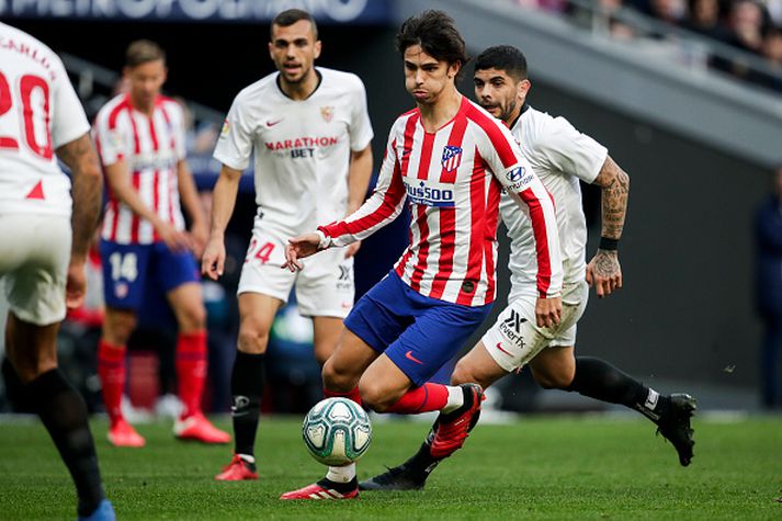 Atletico Madrid fékk Sevilla í heimsókn í spænsku úrvalsdeildinni í fótbolta í dag en liðin eru í harðri baráttu um Meistaradeildarsæti. Luuk De Jong kom gestunum yfir snemma leiks en Alvaro Morata jafnaði metin með marki úr vítaspyrnu eftir hálftíma leik. Portúgalska ungstirnið Joao Felix kom Atletico í forystu á 36.mínútu en skömmu fyrir leikhlé var vítaspyrna dæmd til gestanna sem Lucas Ocampos skoraði úr. Ekkert mark var skorað í síðari hálfleik og lauk leiknum því með jafntefli, 2-2. Sevilla í 3.sæti deildarinnar, níu stigum á eftir toppliði Real Madrid. Atletico Madrid í 5.sæti.