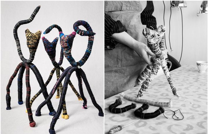 Hönnuðu jólaketti úr notuðum barnafötum Sylvía Rut Sigfúsdóttir skrifar 5. desember 2020 12:00 Birta Rós Brynjólfsdóttir og Hrefna Sigurðardóttir. Sunna Ben Jólakettir úr notuðum barnafötum frá Rauða krossinum á Íslandi prýða þessa dagana glugga Rammagerðarinnar á Skólavörðustíg 12. Rammagerðin fékk vöruhönnuðina Birtu Rós Brynjólfsdóttur og Hrefnu Sigurðardóttur til liðs við sig til að hanna jólakött ársins 2020. Kettirnir eru framleiddir í takmörkuðu upplagi og verða þeir eingöngu fáanlegir í verslun Rammagerðarinnar á Skólavörðustíg jólin 2020. Í framhaldinu verður þetta árlegur viðburður og nýir hönnuðir valdir til að túlka þennan fræga kött. Oftast er talað um jólaköttinn með orðalaginu „að fara í jólaköttinn“ og með því er átt við að hann éti þá sem ekki fá ný föt á jólunum. Því er það skemmtileg nálgun hjá hönnuðunum að gera jólaköttinn eingöngu úr gömlum fötum. Í Jólakötturinn eftir Jóhannes frá Kötlum segir meðal annars: Hann sveimaði, soltinn og grimmur, í sárköldum jólasnæ, og vakti í hjörtunum hroll á hverjum bæ. Ef mjálmað var aumlega úti var ólukkan samstundis vís Allir vissu´, að hann veiddi menn en vildi ekki mýs. Hann lagðist á fátæka fólkið, sem fékk enga nýja spjör fyrir jólin – og baslaði og bjó við bágust kjör. Hönnuðurnir tóku hugmyndina alla leið með því að gera jólaköttinn úr gömlum barnafötum.Sunna Ben Birta og Hrefna reka saman hönnunarstofuna Fléttu, en þær tast við endurnýtt efni í sína hönnun. Meðal fyrri verka Fléttu eru loftljós, borð, lampar og hillur úr gömlum verðlaunagripum og gólfmottur úr notuðum gallabuxum. Hrefna og Birta hafa í tvígang holotið hönnunarverðlaun The Reykjavík Grapevine fyrir vörur ársins árið 2019 og fyrir vörulínu ársins árið 2020.Sunna Ben Hér fyrir neðan má sjá albúm með nokkrum myndum frá þessu áhugaverða verkefni og annarri hönnun frá Fléttu. Ljósmyndarinn Sunna Ben tók þessar myndir. Stúdíó FléttaStúdíó FléttaStúdíó FléttaStúdíó FléttaStúdíó Flétta Jól Tíska og hönnun Mest lesið Breytti um nafn eftir djúpa ástarsorg Tónlist Lét flúra brúðkaupsdaginn á sig en gerði mistök Lífið Sigurjón og Sóley gjörbreyttu eldhúsinu með einstakri útkomu Lífið Fasteignasalar og ofurskvísur í Októberfest stemningu Lífið Komu höndum yfir fæðingarvottorðið og ljóstruðu upp um fæðinguna Bíó og sjónvarp Eitt glæsilegasta hús Reykjavíkur til sölu Lífið Ótrúlegur bílskúr Hönnu Rúnar: „Hvar ertu?“ Lífið Elegant eftirréttur sem hlýjar um hjartarætur Matur Sviti, mjólk og hóstakast eftir að hafa manað hvor annan Lífið Nýir réttir Serrano aðgengilegir í LifeTrack appinu Lífið samstarf Fleiri fréttir Sjóðheitt fyrir snjóstorm Skein skært í sögulegum gleðikonukjól Aldrei of seint að prófa sig áfram Dannaðar dömur mættu með dramað „Nú dýrka ég að vera vaxin eins og fæðing Venusar“ Hiti í Hringekjunni Virtist hvorki geta séð né andað Sænskur og sjóðheitur undir áhrifum BDSM Kasóléttur forystusauður, ungstirni og engilfagrar kanónur „Bíður bara inni í skáp eftir brúðkaupinu“ Betra sem hárbindi en tagl í Bríeti Léti aldrei sjá sig í ökklasokkum Gelluorkan í hæstu hæðum hjá Ginu Heitir pabbar í hlaupaklúbbi Skilnaðar-toppur í París Fann ástina í örlagaríkum kjól Íslensk fyrirsæta slær í gegn á tískupöllum Mílanó Kláraði lögfræði meðan hún sat fyrir hjá Dior Heitasta handatískan í dag Íslenski hönnuðurinn sem Dorrit dýrkar Með sálfræðigráðu á leið í skartgripahönnun í Róm Heklaði á sig forsýningarkjólinn Sjóðheit stemning á rauða dreglinum Ástin sigrar í nýrri herferð gegn ofbeldi Í þrjátíu ára gömlum fötum af mömmu Tískan við þingsetningu: Þjóðlegur þriðjudagur Rokkar pils sem bol og snýr flíkum öfugt Fögnuðu Þjóðbúningadeginum með stæl Fáklædd og flott á dreglinum „Hugsa fallega til stelpunnar sem ég var þá“ Sjá meira