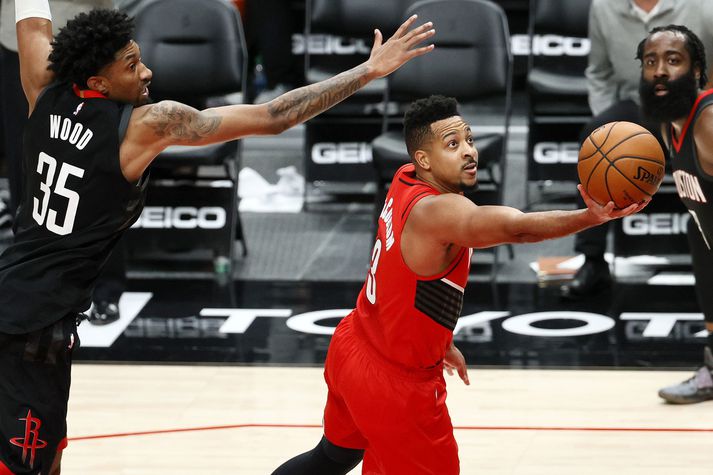 NBA: Harden og McCollum með 44 stig á mann í framlengdum leik Ísak Hallmundarson skrifar 27. desember 2020 09:30 CJ McCollum skoraði sigurkörfu Portland í nótt og setti niður níu þriggja stiga körfur í leiknum. getty/Steph Chambers Það fóru tíu leikir fram í NBA-deildinni í gær. Sjónvarpsleikurinn á Stöð 2 Sport var spennandi viðureign Atlanta Hawks og Memphis Grizzlies þar sem ungstirnin bráðskemmtilegu Trae Young og Ja Morant mættust. Það var Atlanta sem hafði betur að lokum í jöfnum leik, 122-112. Trae Young var stigahæstur með 36 stig auk þess að gefa níu stoðsendingar. Ja Morant var stigahæstur í tapliðinu með 28 stig auk þess að gefa sjö stoðsendingar. 🏀 FINAL SCORE THREAD 🏀Trae Young scores 15 of his 36 PTS in the 4th to lift the @ATLHawks past MEM! #KiaTipOff20 Kevin Huerter: 21 PTS (4-5 3PM)De'Andre Hunter: 15 PTS, 11 REBNathan Knight: 14 PTS (career high)Ja Morant: 28 PTSKyle Anderson: 20 PTS, 14 REB (career high) pic.twitter.com/PtM89UfXPp— NBA (@NBA) December 27, 2020 Leikur kvöldsins var líklega leikur Houston Rockets og Portland Trail Blazers. James Harden og CJ McCollum skoruðu báðir 44 stig og var Harden fyrsti leikmaðurinn í sögu NBA til að skora yfir 40 stig og gefa yfir 15 stoðsendingar í fyrsta leik sínum á tímabili, en hann var með 17 stoðsendingar. Lið hans mátti þó þola tveggja stiga tap, 126-128 fyrir Portland í framlengdum leik þar sem McCollum skoraði sigurkörfuna af þriggja stiga línunni þegar um sjö sekúndur voru eftir. CJ McCollum's career-high 9TH three-pointer wins it for the @trailblazers❗️ pic.twitter.com/4gEBbFU6HZ— NBA (@NBA) December 27, 2020 🚀 @JHarden13 (44 PTS, 17 AST) becomes the first player in @NBAHistory with 40+ points and 15+ assists in their first game of the season. pic.twitter.com/P42B3l9cP0— NBA (@NBA) December 27, 2020 Öll úrslit næturinnar: Memphis Grizzlies 112-122 Atalanta Hawks Charlotte Hornets 107-109 Oklahoma City Thunder Detroit Pistons 119-128 Cleveland Cavaliers Washington Wizards 120-130 Orlando Magic New York Knicks 89-109 Philadelphia 76ers Chicago Bulls 106-125 Indiana Pacers San Antonio Spurs 119-114 Toronto Raptors Utah Jazz 111-116 Minnesota Timberwolves Portland Trailblazers 128-126 Houston Rockets Sacramento Kings 106-103 Phoenix Suns NBA Mest lesið Þessi tíu eru tilnefnd sem Íþróttamaður ársins 2025: 23 ára aldursmunur Sport Sakaður um niðurlægingu: „Við viljum ekki hafa hann sem þjálfara“ Handbolti Erfitt að vera í burtu þegar mamma greindist Fótbolti Einn leikmaður með samning og völlurinn ólöglegur Fótbolti Áfallið staðreynd og Isak búinn í aðgerð Enski boltinn Vildi tapa legg: „Mesti hávaði sem ég hef heyrt“ Sport Missti alveg stjórn á skapinu en það skilaði sigri Körfubolti Salah færði Egyptum draumabyrjun Fótbolti Sagði látna systur sína hafa tryggt sigurinn ótrúlega Sport Steraleikarnir segi ungu fólki að það sé aldrei nógu fullkomið Sport Fleiri fréttir Missti alveg stjórn á skapinu en það skilaði sigri Stórstjarna úr WNBA-deildinni í heimsókn á Íslandi ÍR-ingar bæta við sig reyndum og hittnum Króata Í bann fyrir að kasta flösku í barn Hjalti Þór ráðinn aðalþjálfari Álftaness Kolbrún María kom við sögu í endurkomu Hannover Næstframlagshæstur í grátlegu tapi Fékk næstum 4,5 milljóna króna sekt fyrir að sýna dómara fingurinn „Komum eins og aumingjar inn í þennan leik“ „Jólasteikin mun bragðast betur í ljósi þessa sigurs“ Stjarnan - Álftanes 108-104 | Unnu grannaslaginn naumlega Uppgjörið: Ármann - ÍA 102-83 | Ármann náði í gríðarlega mikilvæg stig í fallbaráttunni með sigri gegn Skagamönnum Jokic tók NBA-met af Abdul-Jabbar í nótt KR á frábærum stað en getur ekki unnið titilinn Útilokar ekki breytingar: „Er klárlega að líta í kringum mig“ Uppgjörið: Keflavík - Njarðvík 93-83 | Enn taplausir í Sláturhúsinu „Ánægður að spila ekki betur en þetta en vinna samt“ „Svo lengi sem það er ekki jákvæð og góð umfjöllun um okkur erum við sáttir“ „Hefðum þurft að hafa heppnina með okkur í liði“ ÍR - Valur 82-85 | Baráttusigur í Breiðholti „Sáttur að geta farið heim, borðað vel og fengið mér nokkra kalda“ Tindastóll - KR 130-117 | Kláruðu gestina í seinni hálfleik Þór Þ. - Grindavík 94-106 | Baráttusigur gegn löskuðu liði Þórs Liðsfélagar Guðbjargar ekki fæddir þegar hún spilaði fyrsta leikinn Þola þeir ekki gott umtal? „Helmingur minna leikmanna skilur ekki íslensku“ „Ef við hefðum ekki verið að setja þessi skot þá hefðum við skíttapað“ KR á toppinn Uppgjörið: Grindavík - Haukar 92-93 | Fullkomin jólagjöf Spilaði 13 mínútur en var stigahæstur Rýndu í gamlar myndir: „Svakalega ertu kringlóttur í framan“ Sjá meira