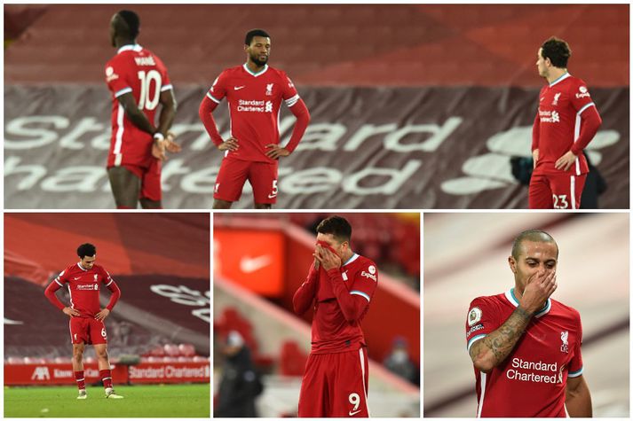 Sögðu Liverpool í „sögulegri krísu“ Anton Ingi Leifsson skrifar 21. febrúar 2021 14:30 Svekkelsið leyndi sér ekki hjá leikmönnum Liverpool í gær. Laurence Griffiths/Getty Það eru vandræði hjá ensku meisturunum í Liverpool. Þeir hafa tapað fjórum deildarleikjum í röð á heimavelli og eru sextán stigum á eftir toppliði Manchester City sem á leik til góða. Jan Mølby lék með Liverpool á árunum 1984 til 1996 við góðan orðstír. Daninn lék tæplega þrjú hundruð leiki fyrir félagið og þekkir hvern krók og kima hjá félaginu. Hann vinnur nú sem spekingur fyrir dönsku sjónvarpsstöðina TV3Sport og hann var í beinni frá Anfield eftir tapið gegn Everton í gær. „Ég sit fyrir framan útvarpsstöð sem sagði að Liverpool væri í sögulegri krísu,“ sagði Daninn. „Það er að sjálfsögðu út af því að væntingarnar til þessa liðs eru svo miklar í hvert einasta skipti sem það spilar. Maður ætlast til þess að þeir vinni. Því segja menn þetta sögulega krísu.“ El derbi de Mereyside agranda la crisis del Liverpool https://t.co/hzT3oKal2f pic.twitter.com/f4sxtrVzhB— La Estrella | Panamá (@EstrellaOnline) February 21, 2021 Margir velta nú fyrir sér hvað Liverpool þurfi að gera til þess að koma sér út úr þessum vandræðum og Martin Jørgensen, fyrrum danskur landsliðsmaður, var ekki með svarið á reiðum höndum. „Ef ég vissi svarið gæti ég orðið ansi ríkur. Ég held að þetta sé spurning sem Jurgen Klopp spyr sjálfan sig að,“ sagði Martin og hélt áfram. „Hann getur sagt að þeir eigi að halda áfram og gera það sem þeir hafa gert síðustu þrjú ár en leikmennirnir eru dálítið ráðvilltir inni á vellinum.“ „Þeir eru í mótvind, sem þeir hafa ekki lent í síðustu ár, þar sem þeir hafa bara unnið og unnið. Núna þurfa þeir að finna lausnir, sem þeir hafa ekki,“ bætti Martin við. 🗣"Can he play for Jurgen Klopp?"@andydunnmirror thinks Liverpool's problems run deeper than their injury crisis, including if Thiago suits a Jurgen Klopp system pic.twitter.com/3pR9O80Kub— Football Daily (@footballdaily) February 21, 2021 Enski boltinn Tengdar fréttir Gylfi elskar að spila gegn stóru liðunum Gylfi Þór Sigurðsson skoraði sitt 65. mark í ensku úrvalsdeildinni í gær er hann skoraði annað mark Everton í 2-0 sigri á grönnunum í Liverpool. 21. febrúar 2021 11:00 „Mjög erfitt og þú gast séð það í andlitinu á leikmönnunum“ Það var mikið svekkelsi hjá Georginio Wijnaldum, miðjumanni Liverpool, eftir 2-0 tapið gegn Everton í slagnum um Bítlaborgina í dag. 20. febrúar 2021 20:01 Gylfi skoraði í sigri Everton og grannarnir eru nú jafnir að stigum Everton vann 2-0 sigur á Liverpool í Bítlaborgarslagnum nú síðdegis. Richarlison og Gylfi Þór Sigurðsson skoruðu mörk Everton en þetta var fyrsti sigur Everton á Anfield síðan 1999 og fyrsti sigurinn á Liverpool síðan 2010. 20. febrúar 2021 19:23 Mest lesið Þessi tíu eru tilnefnd sem Íþróttamaður ársins 2025: 23 ára aldursmunur Sport Sagan ekki sönn: „Veit ekki hvaðan þetta á að hafa komið“ Íslenski boltinn Arsenal í undanúrslit eftir vító Enski boltinn Arnar Daði rekinn frá Stjörnunni en áfram þjálfari kvennaliðsins Handbolti Sakaður um niðurlægingu: „Við viljum ekki hafa hann sem þjálfara“ Handbolti Erfitt að vera í burtu þegar mamma greindist Fótbolti Man. Utd reyndi stíft en Semenyo kaus City Enski boltinn Koepka fyrsta stjarnan sem riftir samningi við LIV Golf Öll höllin æpti nafn Gísla í spennutrylli Handbolti Glódís framlengir samninginn við Bayern Fótbolti Fleiri fréttir Arsenal í undanúrslit eftir vító Man. Utd reyndi stíft en Semenyo kaus City „Tölfræðilega séð eiga þeir ekkert að vera í þessari stöðu“ Chelsea setur sig í samband við Semenyo Jiménez jafnaði bestu vítaskyttu sögunnar Slot mun sakna Isak í tvo mánuði eftir „glórulausa tæklingu“ Sjáðu „auma“ vítið sem skilaði Fulham sigri Fulham skildi Forest eftir við fallsvæðið Áfallið staðreynd og Isak búinn í aðgerð Fagnaði titli Liverpool sem óður maður um alla borg „Allir virðast elska hann“ „Þetta mun ekki buga okkur“ Guardiola mun vigta leikmenn Man City eftir jólin „Ef þið væruð Antoine Semenyo, hvert mynduð þið fara?“ Sjáðu mörkin: Rogers sá um Manchester United Óttast að Isak hafi fótbrotnað Tvenna frá Rogers tryggði Villa sigur gegn Manchester United Fimmta sinn sem Arsenal er á toppnum um jólin: Unnu ekki titilinn í fyrstu fjögur skiptin „Viljum við að okkar verði minnst fyrir að vera skræfur?“ „Ef dómarinn hefði sinnt sínu starfi almennilega hefði Romero ekki fengið spjald“ Haaland gaf barnabarni Hareide gjöf Sjáðu mörkin úr enska: Sviptingar, sænskt þema og svakalegar tæklingar Calvert-Lewin hættir ekki að skora Gyökeres skaut Arsenal aftur á toppinn Slot fámáll um stöðuna á Isak Gleði og sorg í sigri Liverpool Dramatík er Broja reyndist hetja Burnley Haaland frábær er Manchester City komst á toppinn Andri Lucas skoraði í langþráðum sigri Blackburn Chelsea vann upp tveggja marka forskot á St James' Park Sjá meira