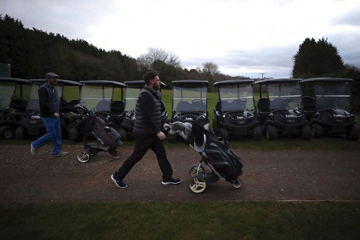 Slakað á sóttvarnaaðgerðum utandyra í Bretlandi Kjartan Kjartansson skrifar 29. mars 2021 13:29 Kylfingar í Telford í Englandi, frelsinu fegnir í morgun. Slakað var á sóttvarnaaðgerðum sem hafa verið í gildi undanfarna þrjá mánuði. AP/Nick Potts Allt að sex manns geta nú komið saman utandyra og íþróttir sem eru spilaðar úti eru aftur leyfðar eftir að slakað var verulega á sóttvarnaaðgerðum sem hafa gilt frá ársbyrjun í Bretlandi í dag. Nýjum kórónuveirusmitum hefur fækkað verulega með ströngum aðgerðum undanfarinna mánaða. Um þrjátíu milljónir manna hafa nú verið bólusettir gegn veirunni í Bretlandi, um 57% allra fullorðinna landsmanna. Takmarkanir sem komið var á í byrjun þessa árs hafa einnig skilað verulegri fækkun smita. Þrátt fyrir það hvatti Boris Johnson, forsætisráðherra, landa sína til þess að ganga hægt um gleðinnar dyr. Fólk ætti til dæmis ekki að blanda mikið geði innandyra. Með tilslökununum í dag getur fólk frá tveimur heimilum hist utandyra í almenningsgörðum en þó aðeins sex manns að hámarki. Tennis- og golfvellir fengu að opna aftur og skipulagt íþróttastarf utandyra gat hafist aftur. Hægt er að halda brúðkaup en þó aðeins með sex gestum. AP-fréttastofan segir að Bretar tali um daginn sem „gleðilegan mánudag“. Ekki aðeins hafi verið slakað á aðgerðum og íþróttir utandyra heimilaðar heldur geri nú óvenjuhlýtt vor. Hitinn sé sums staðar á við Suður-Spán á þessum árstíma. Svo spenntir voru sumir að komast aftur af stað í íþróttunum að golfmót hófst eina mínútu yfir miðnætti í nótt á Morley Hayes-golfvellinum á Englandi. Þar léku kylfingar á sjö holu góðgerðamóti undir flóðljósum. Svipaðar tilslakanir tóku gildi í Skotlandi, Wales og á Norður-Írlandi í dag. Þúsundir manna söfnuðust saman á ströndum í Wales um helgina eftir að slakað var á ferðatakmörkunum sem höfðu verið í gildi þar frá því í desember. Faraldur kórónuveiru (COVID-19) Bretland Mest lesið Hrindir af stað söfnun fyrir móður stúlkunnar sem lést í Suður-Afríku Innlent Málið sem Trump getur ekki losað sig við Erlent Varð vitni að ótrúlegum norðurljósum: „Mér fannst þetta magnað“ Innlent Færir nýársboðið fram á þrettándann Innlent Þau eru tilnefnd sem maður ársins Innlent Fjórir fluttir á sjúkrahús eftir bílveltu á Suðurlandi Innlent Ætlar ekki að beita sér í máli starfsmanns Útlendingastofnunar Innlent „Ég vil ekki nokkurn tímann sjá neitt svona aftur“ Innlent Hljóti að vera komið að því að skoða öryggisgæslu við skóla Innlent Sextán ára fékk greitt fyrir að færa Epstein stúlkur Erlent Fleiri fréttir Sýknaður af nauðgun eftir að hafa verið skimaður fyrir sjaldgæfri svefnröskun Málið sem Trump getur ekki losað sig við Grunaður um manndráp eftir að tveggja ára drengur féll úr blokk Fóru um borð í vélvana rússneskt skip Baulað á Albanese á minningarathöfn á Bondi-strönd Kvarta yfir ritskoðun Epstein-skjala: „Við vitum ekki hvað við vitum ekki“ Níu skotnir til bana á krá Sextán ára fékk greitt fyrir að færa Epstein stúlkur Ljósmyndir horfnar úr Epstein-skjölunum, þar á meðal ein af Trump Vilja dauðarefsingu af borðinu vegna hagsmunaáreksturs ráðherra Pútín sagður hafa valið Witkoff Gerðu umfangsmiklar árásir gegn ISIS í Sýrlandi Það helsta úr fyrsta skammti Epstein-skjalanna Epstein-skjölin birt Draga tilvist neðanjarðarhafs á Títan í efa Réðust á skip úr skuggaflotanum þúsundir kílómetra frá Úkraínu Enn fleiri myndir úr safni Epsteins: „En hún vill þúsund dali fyrir hverja stúlku“ Trump vill til tunglsins fyrir 2028 Herða reglur og ráðast í endurkaup á skotvopnum Morðinginn í Brown háskóla fannst látinn Evrópa samþykkir 90 milljarða evra lán til Úkraínu Rannsaka tengsl skotárásarinnar við annað morð Sex um borð í einkaþotu sem hrapaði Beita dómara ICC refsiaðgerðum vegna Ísrael Taka á kvenfyrirlitningu með sérstöku námskeiði fyrir drengi Hæðist að og smánar fyrrverandi forseta á „frægðargangi“ Frú Macron í klandri eftir ósmekkleg ummæli um femínista „Dr. Dauði“ í lífstíðarfangelsi fyrir að myrða tólf Ekki hafi verið rétt að benda á Skandia-manninn sem morðingja Palme Myndskeið birt af Reiner eftir morðin og fyrir handtöku Sjá meira